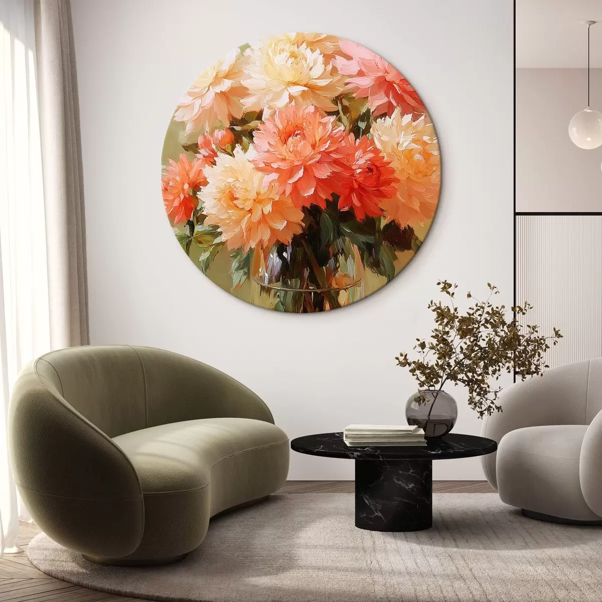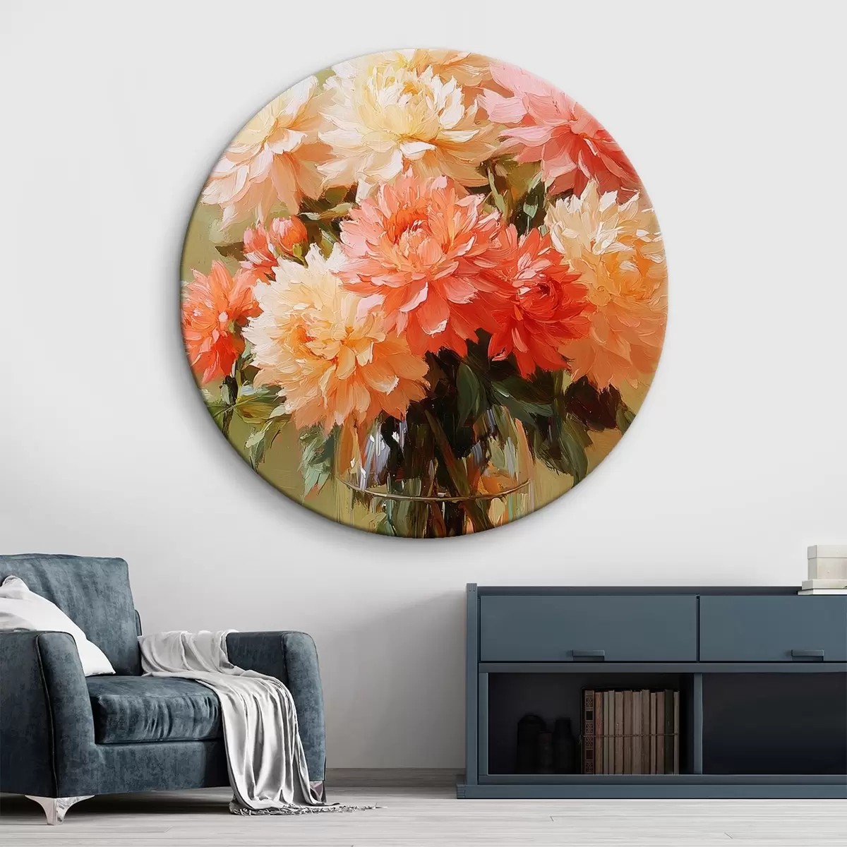 Quadri rotondi Bouquet di fiori lussureggianti in un vaso r42494