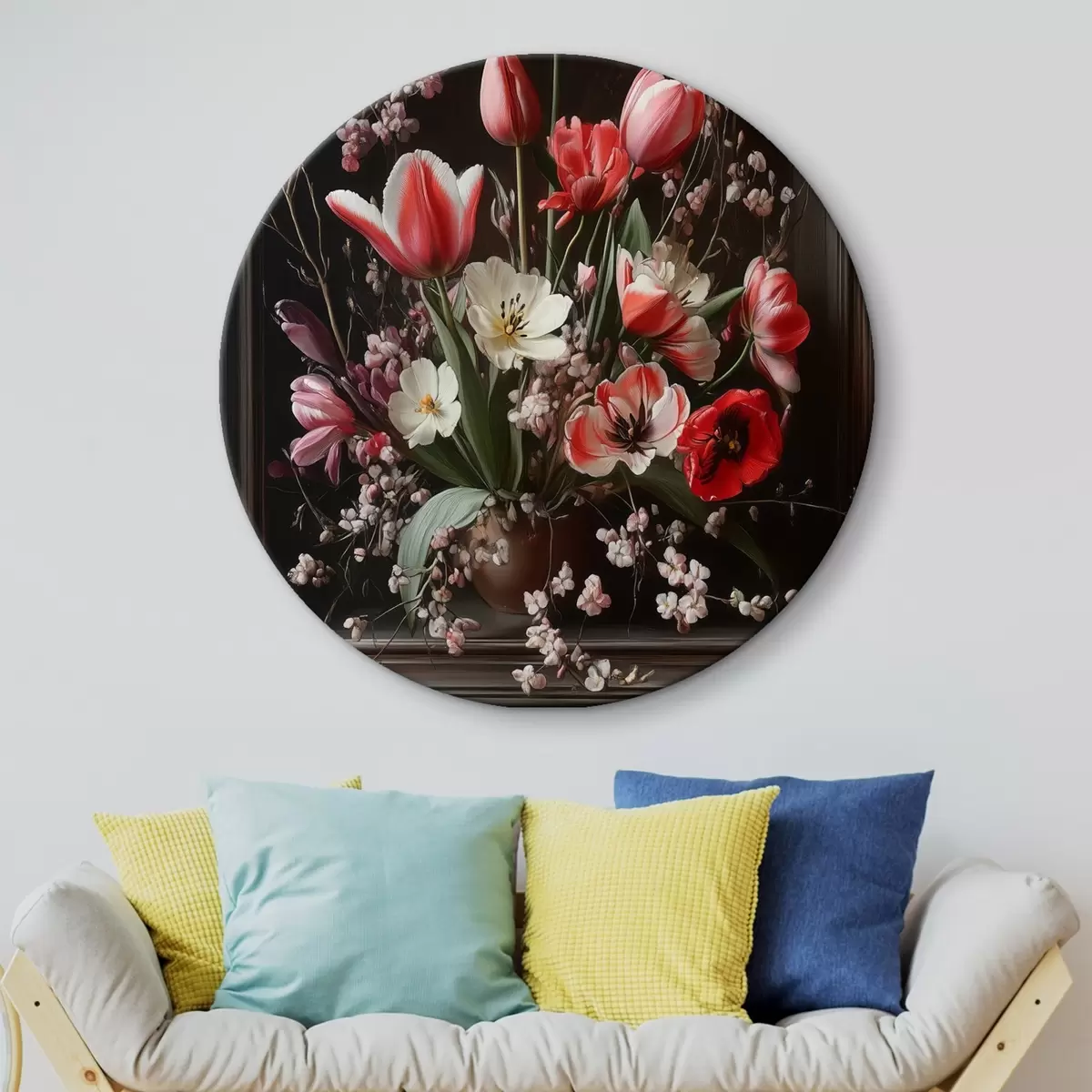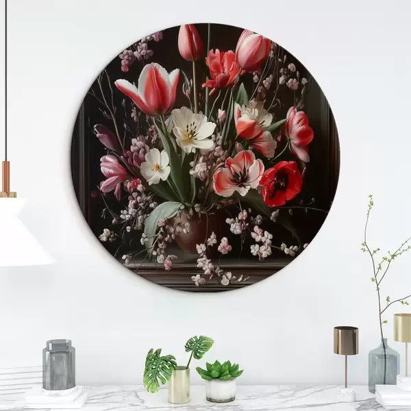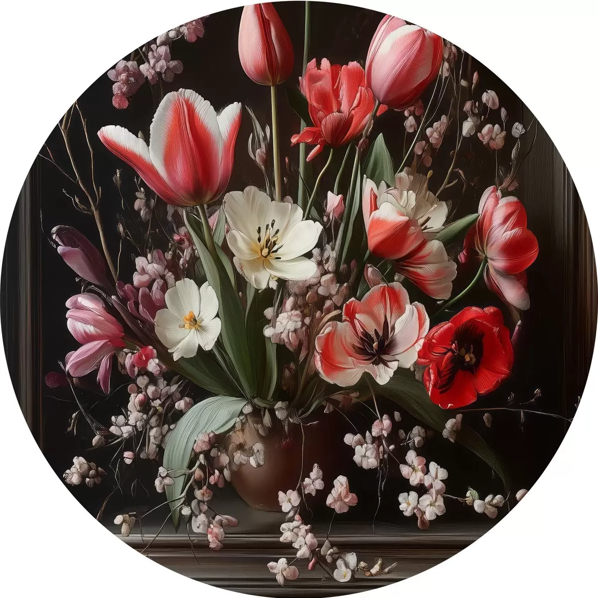 Quadri rotondi Bouquet su sfondo scuro r42499