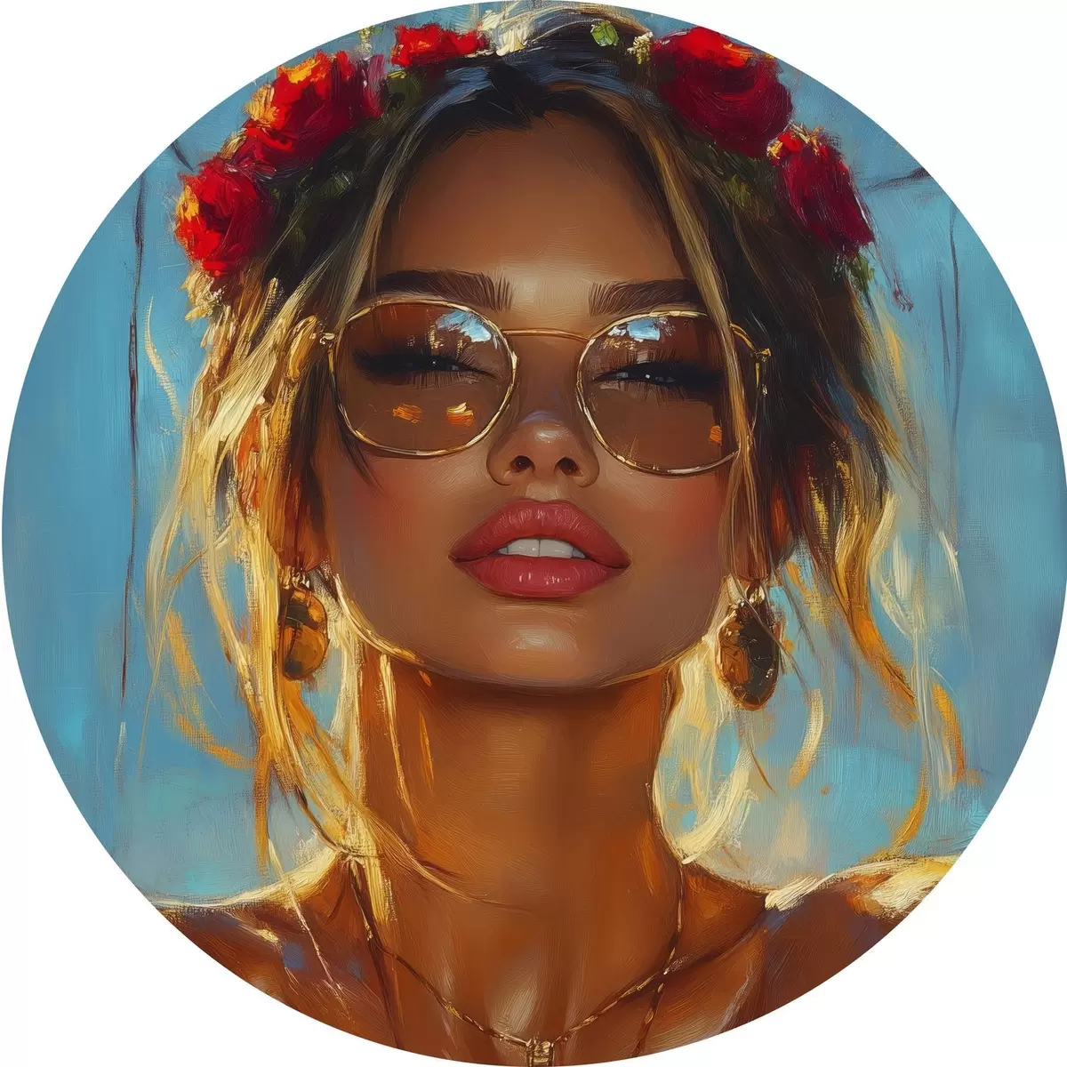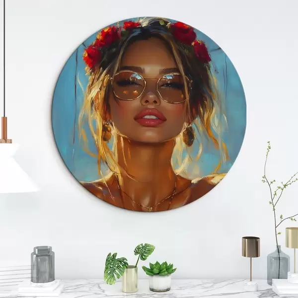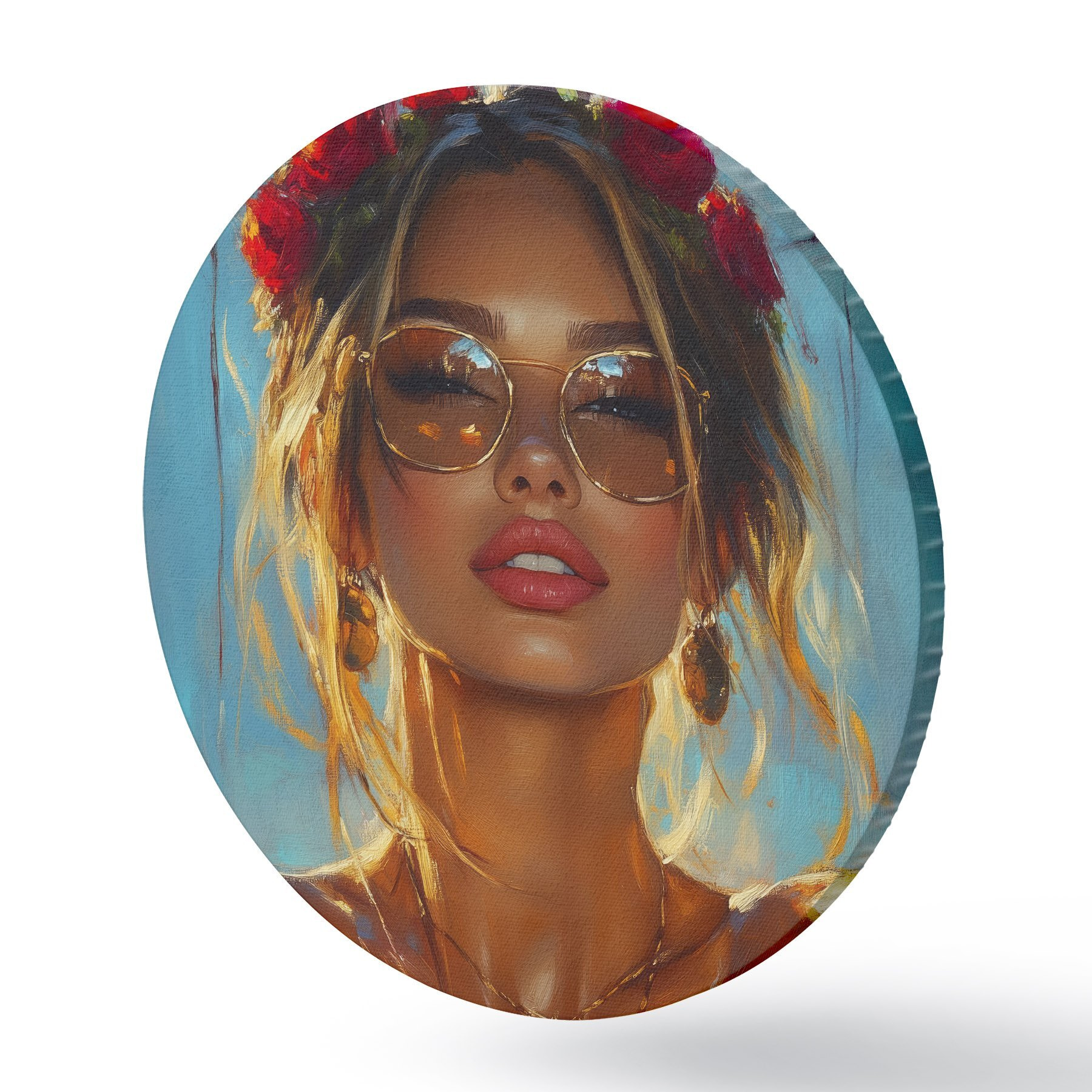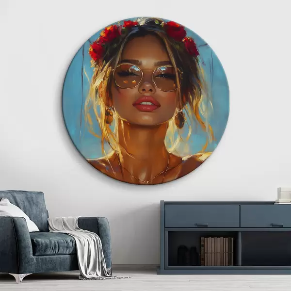 Quadri rotondi Ritratto di ragazza con occhiali da sole r42503