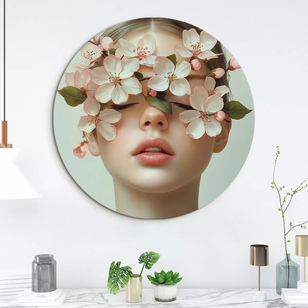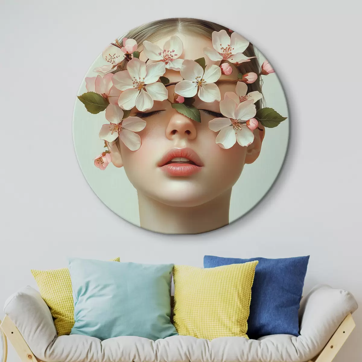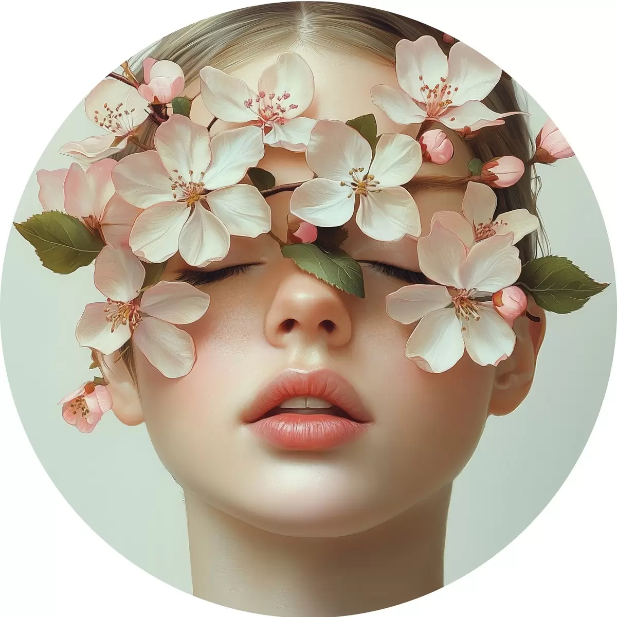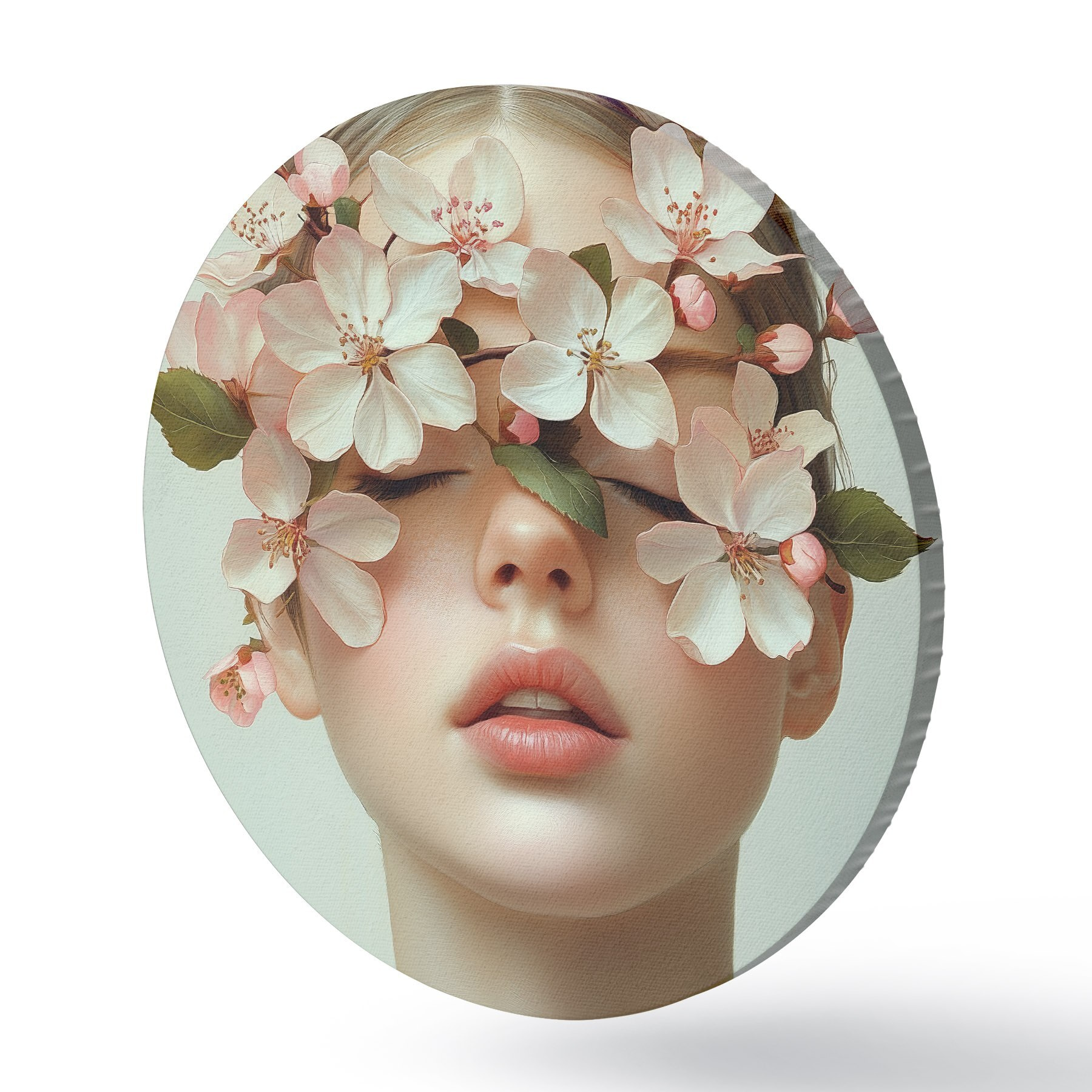 Quadri rotondi Ritratto di ragazza con fiori sul viso r42506