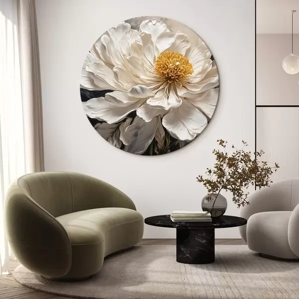Quadri rotondi Fiore bianco su sfondo nero e beige r42522