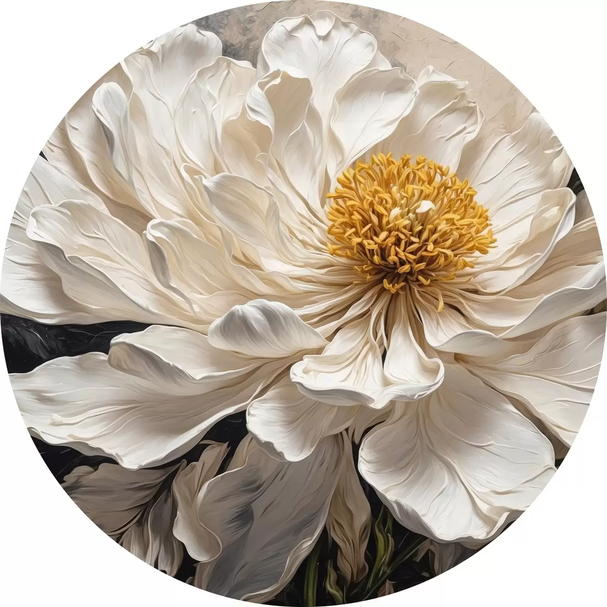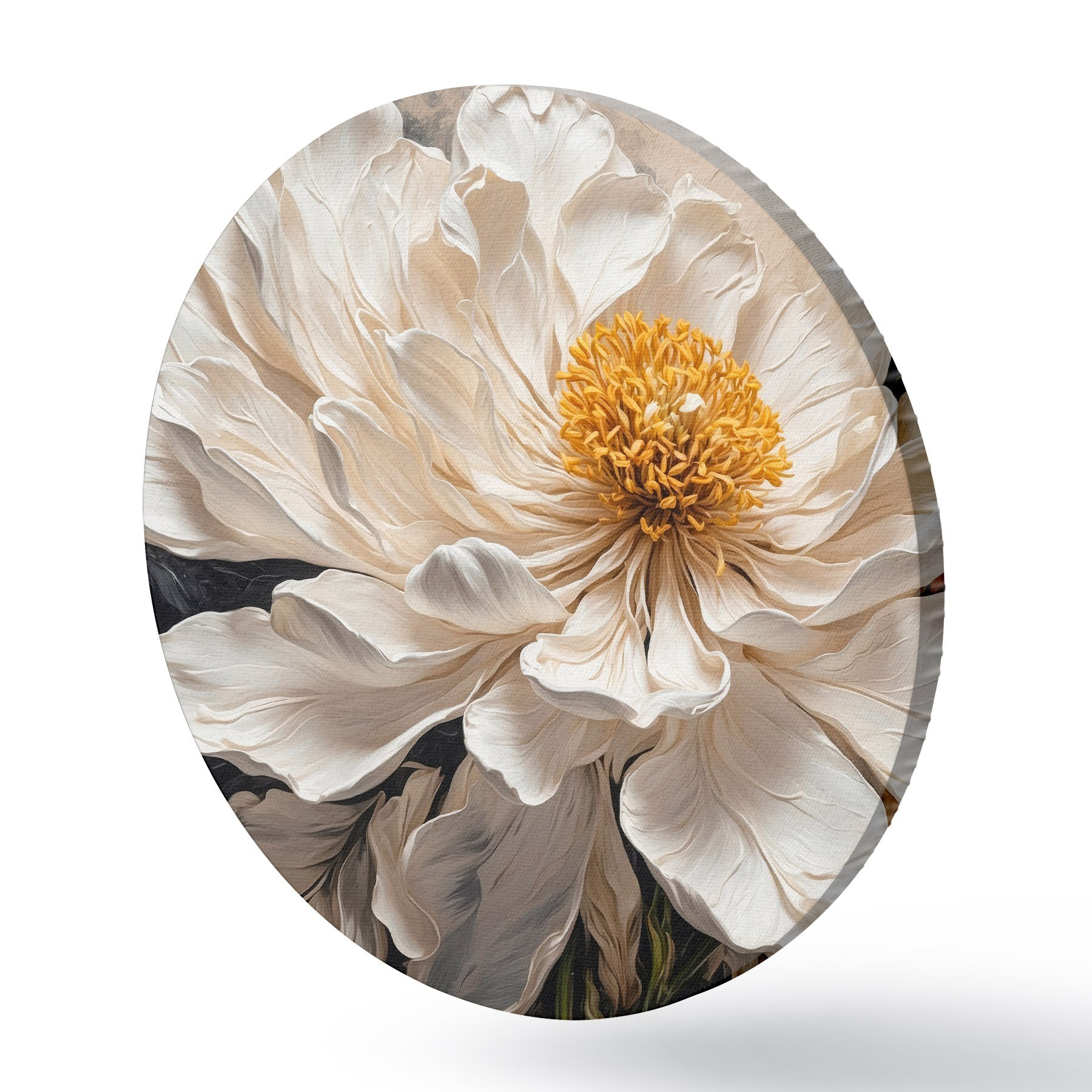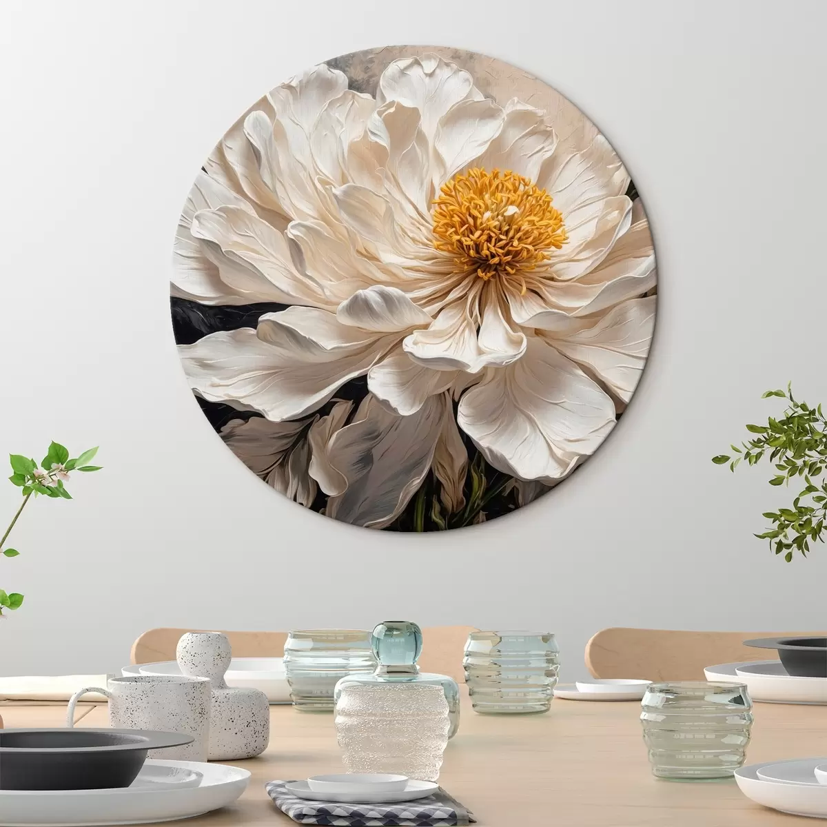 Quadri rotondi Fiore bianco su sfondo nero e beige r42522