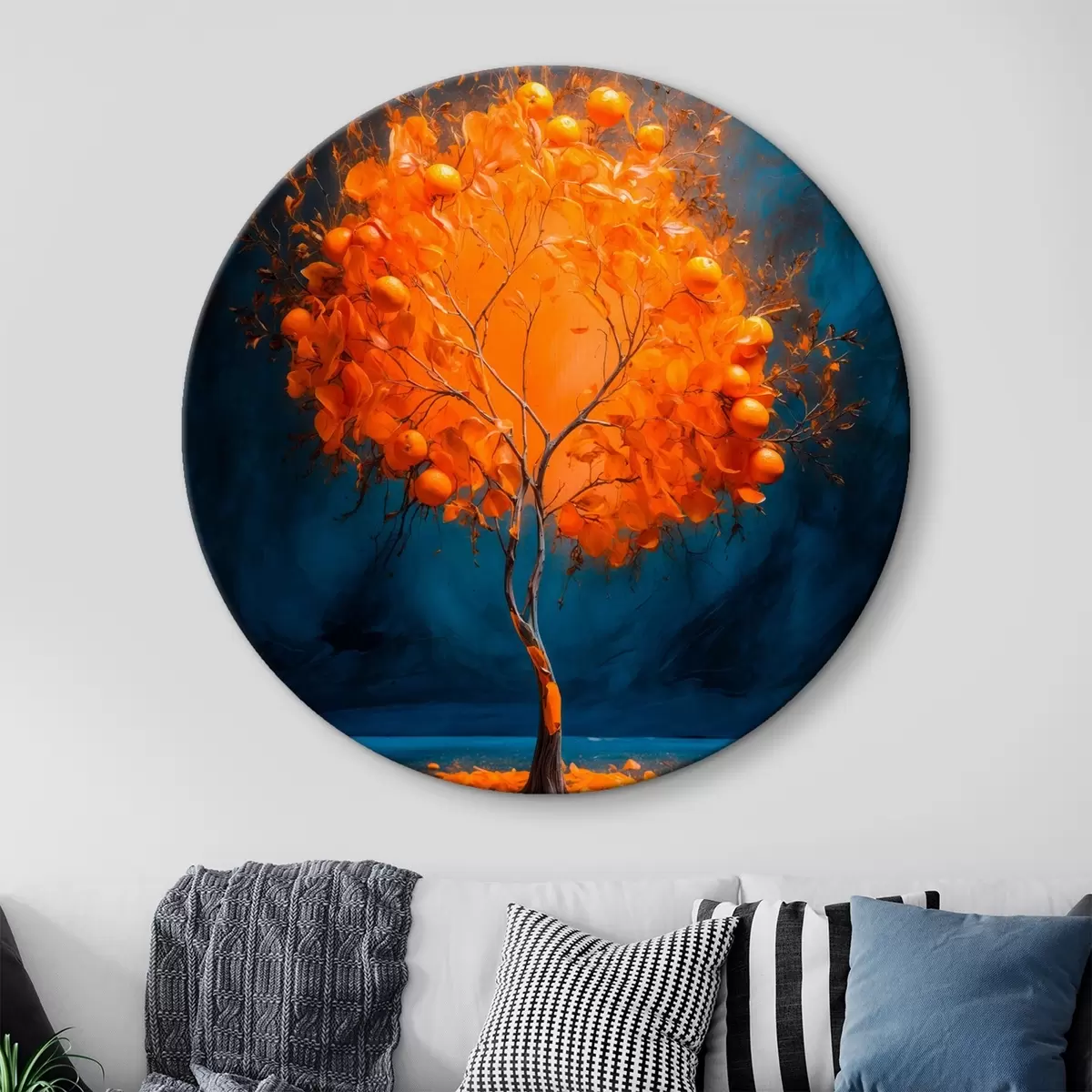 Quadri rotondi Albero arancione su sfondo blu in stile pittura acrilica r42525
