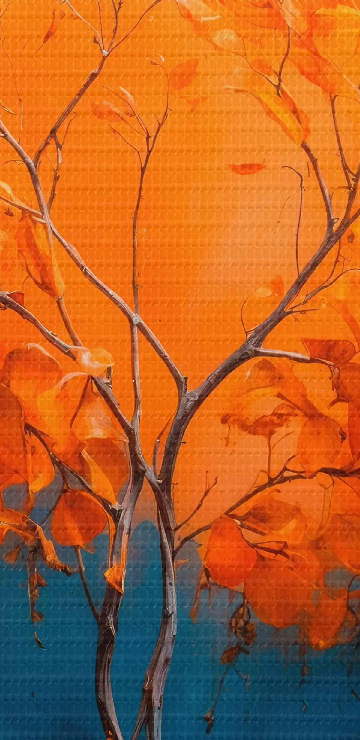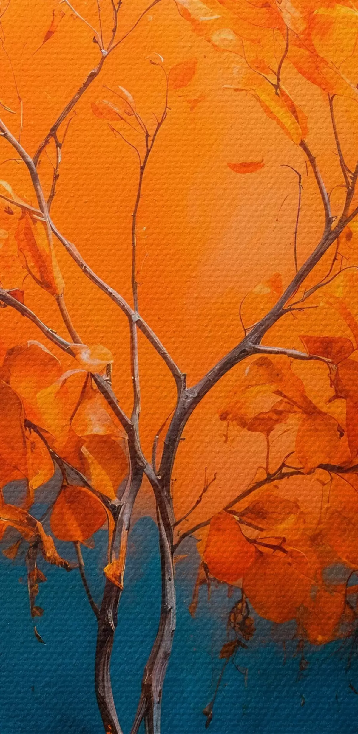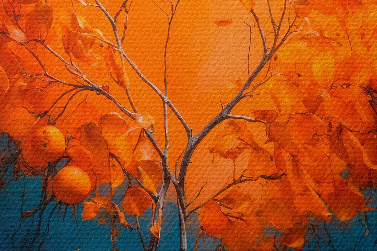 Immagine Albero arancione su sfondo blu in stile pittura acrilica Nr r42525