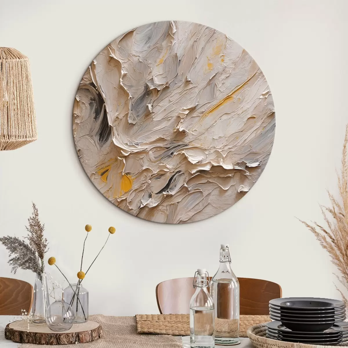 Quadri rotondi Pittura astratta con colori neri e gialli in stile pittura ad olio r42526