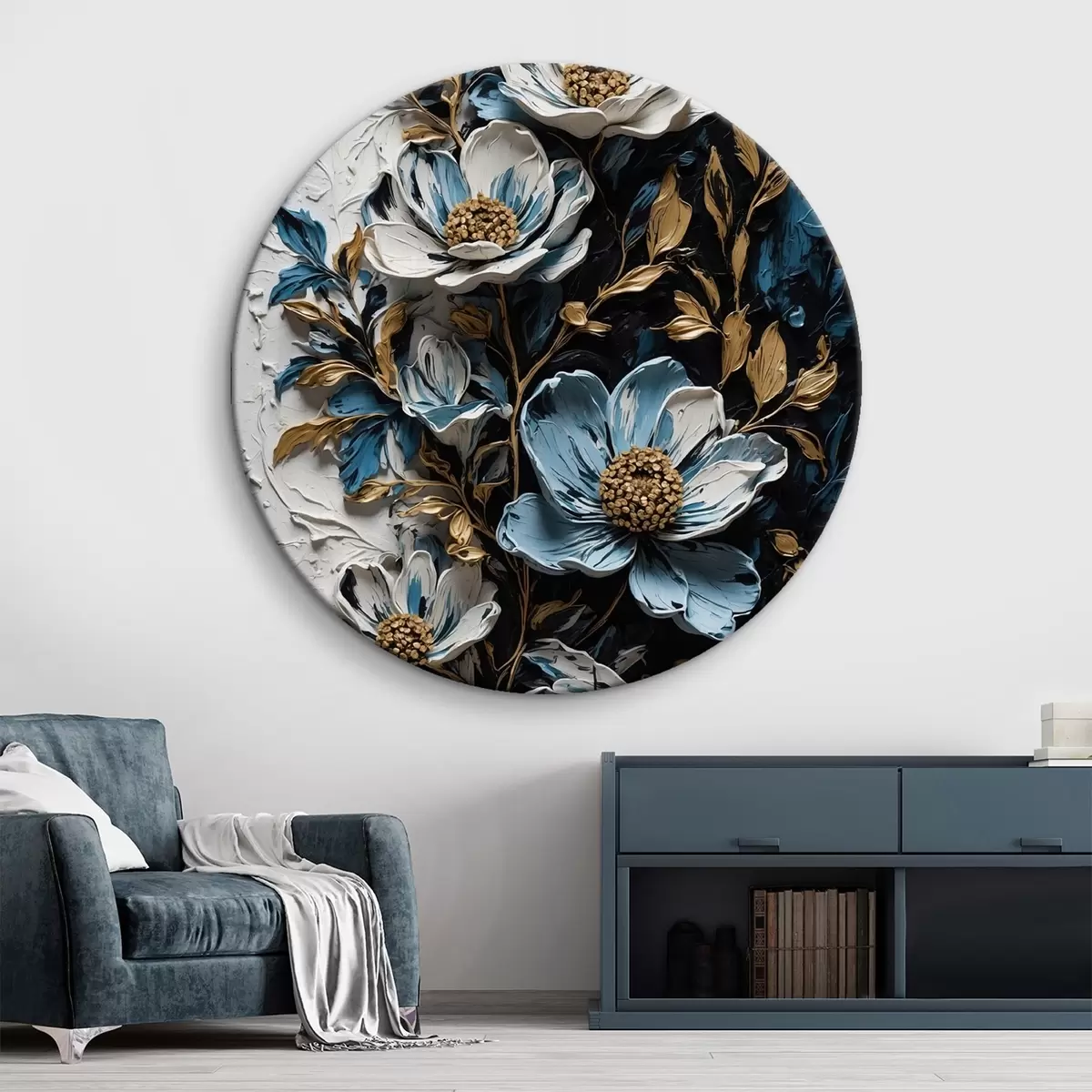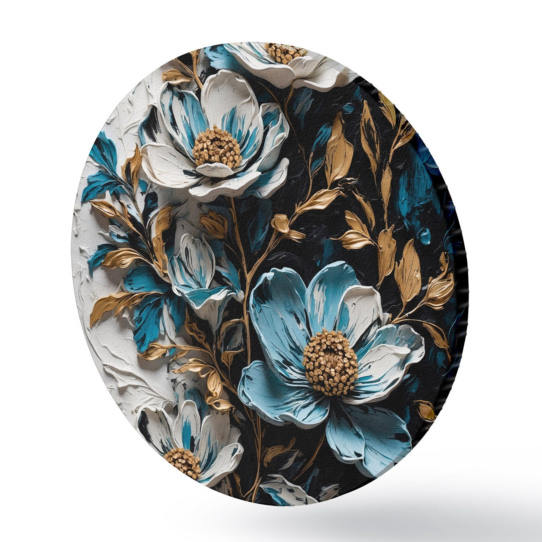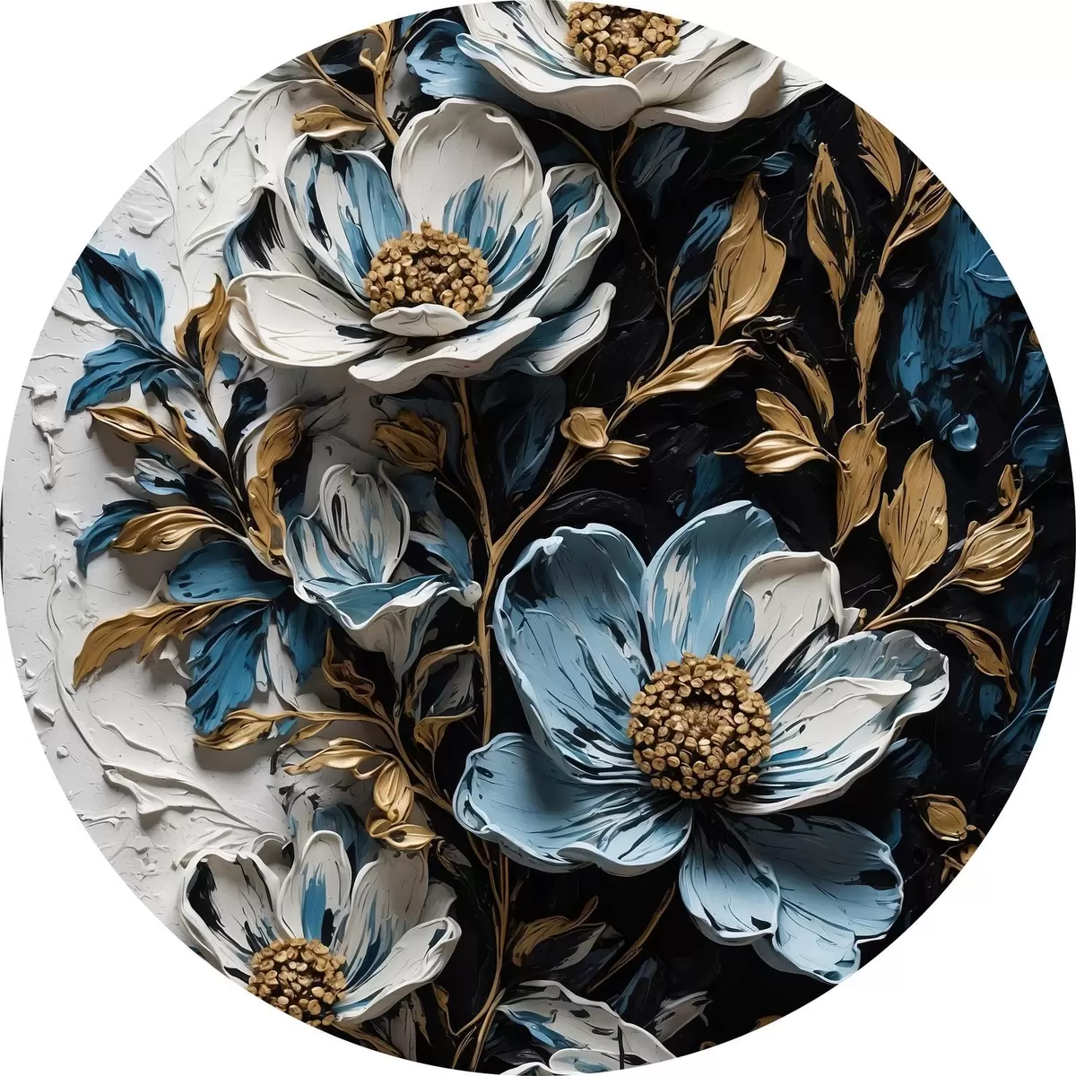 Quadri rotondi Fiori e steli su sfondo bianco e nero in stile pittura ad olio r42532