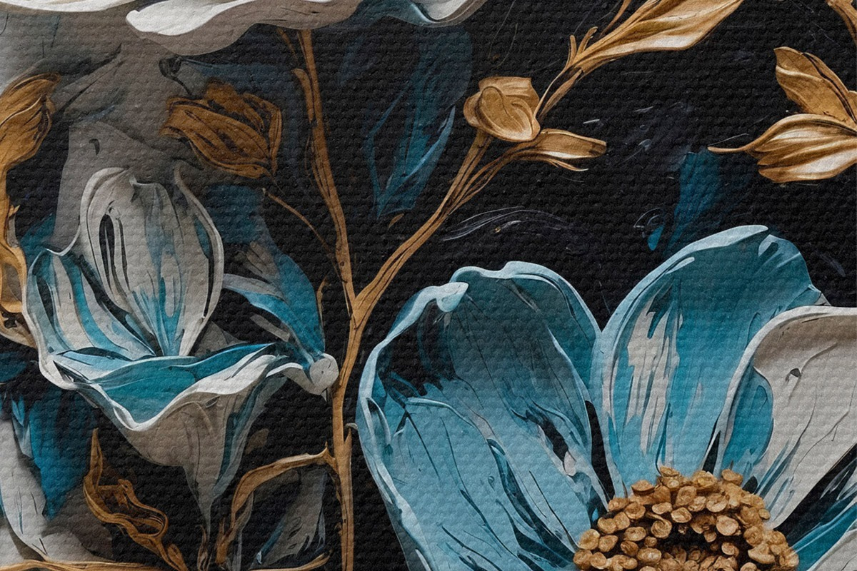Immagine Fiori e steli su sfondo bianco e nero in stile pittura ad olio Nr r42532