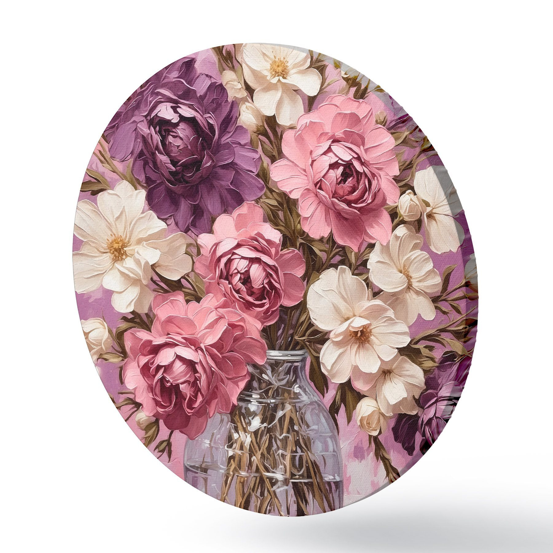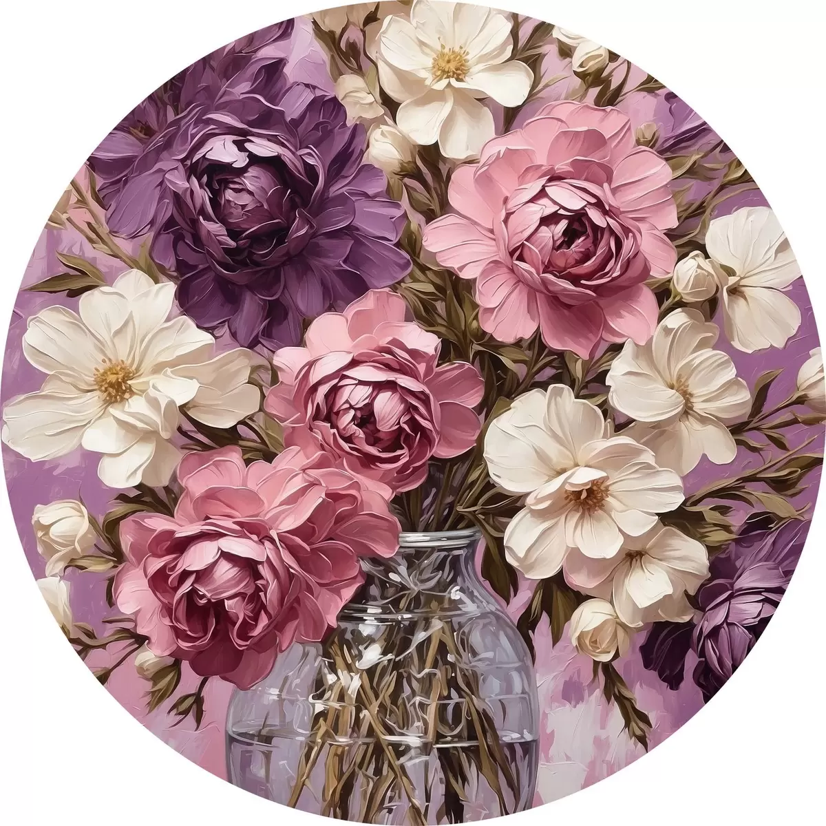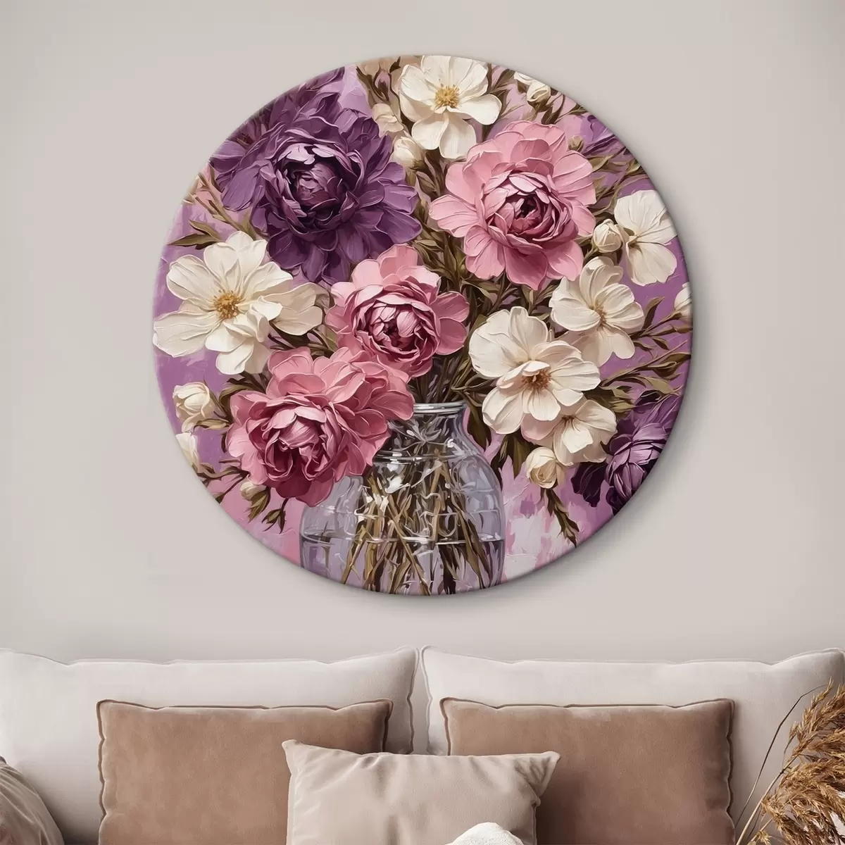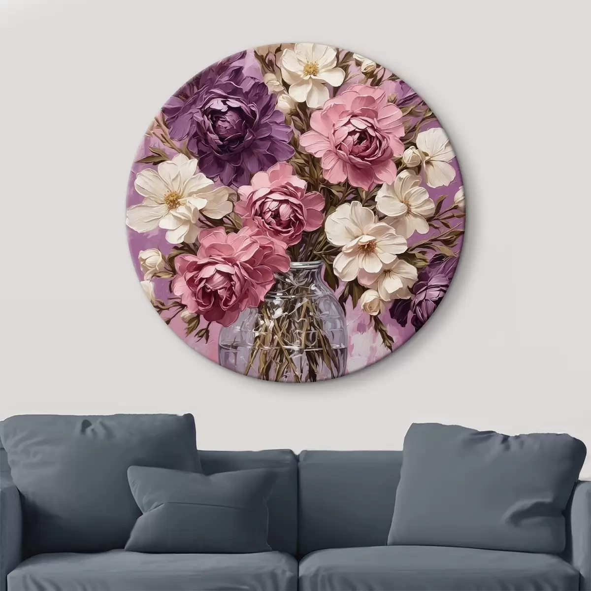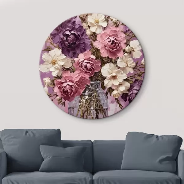Quadri rotondi Fiori in vaso trasparente su sfondo viola r42535