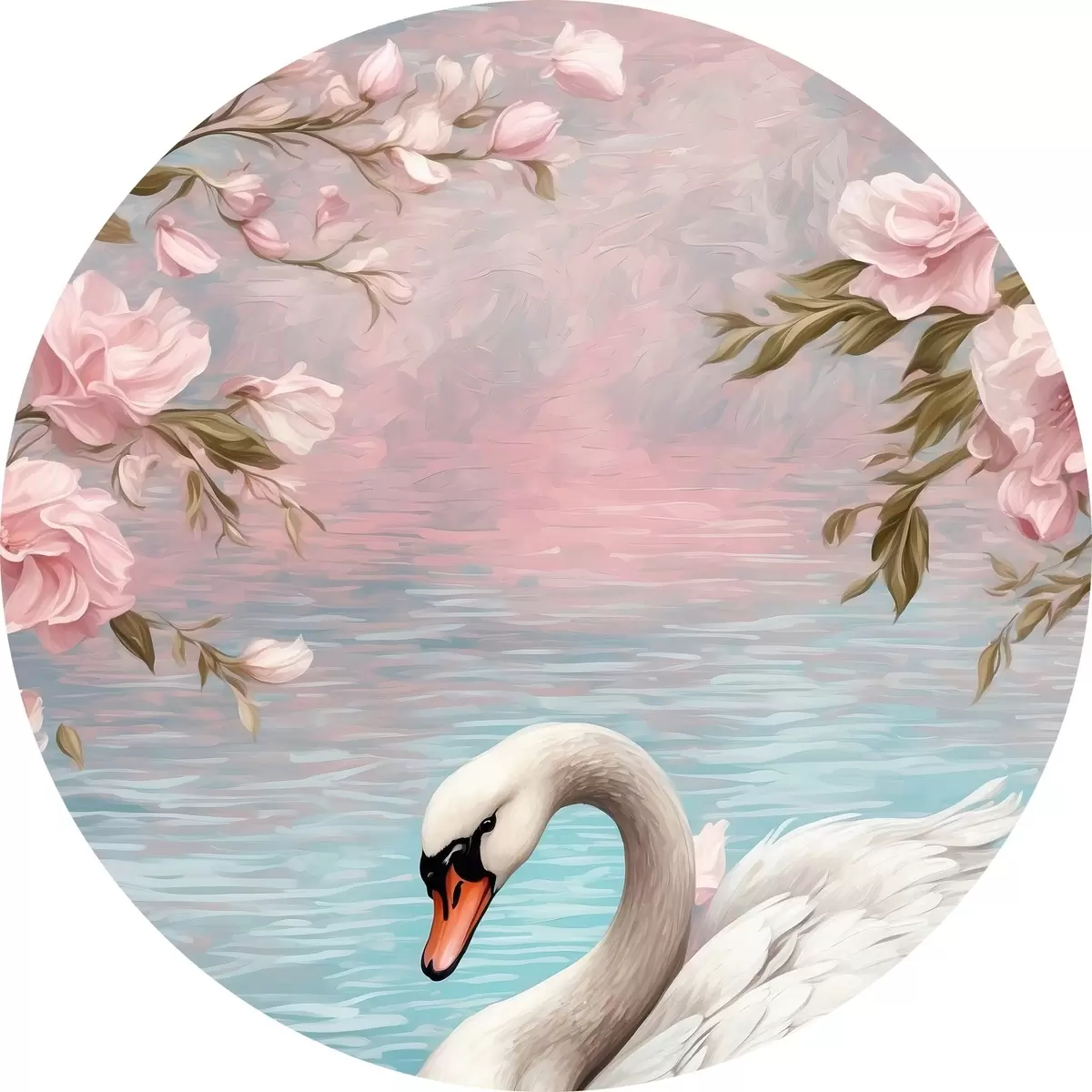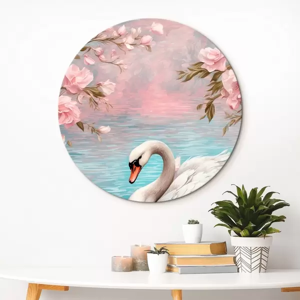 Quadri rotondi Cigno nel lago r42543