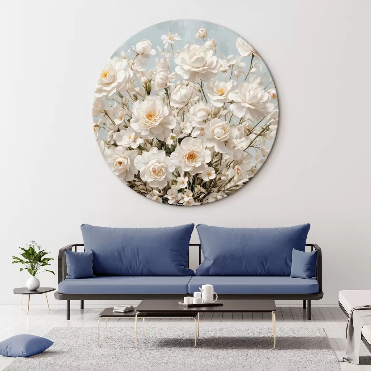 Quadri rotondi Fiori bianchi in vaso trasparente in stile pittura acrilica r42545