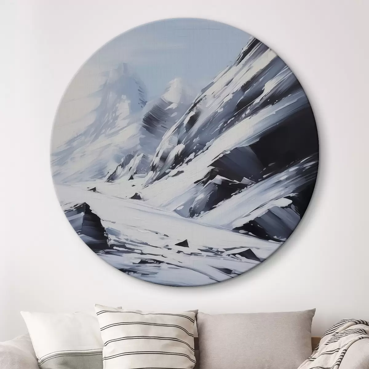 Quadri rotondi Le rocce innevate imitano le pennellate di un dipinto r42585