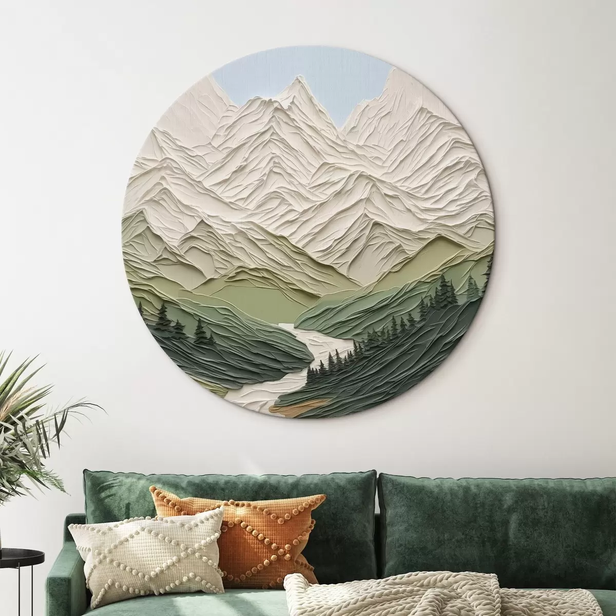 Quadri rotondi Pennellate di imitazione del paesaggio montano r42590