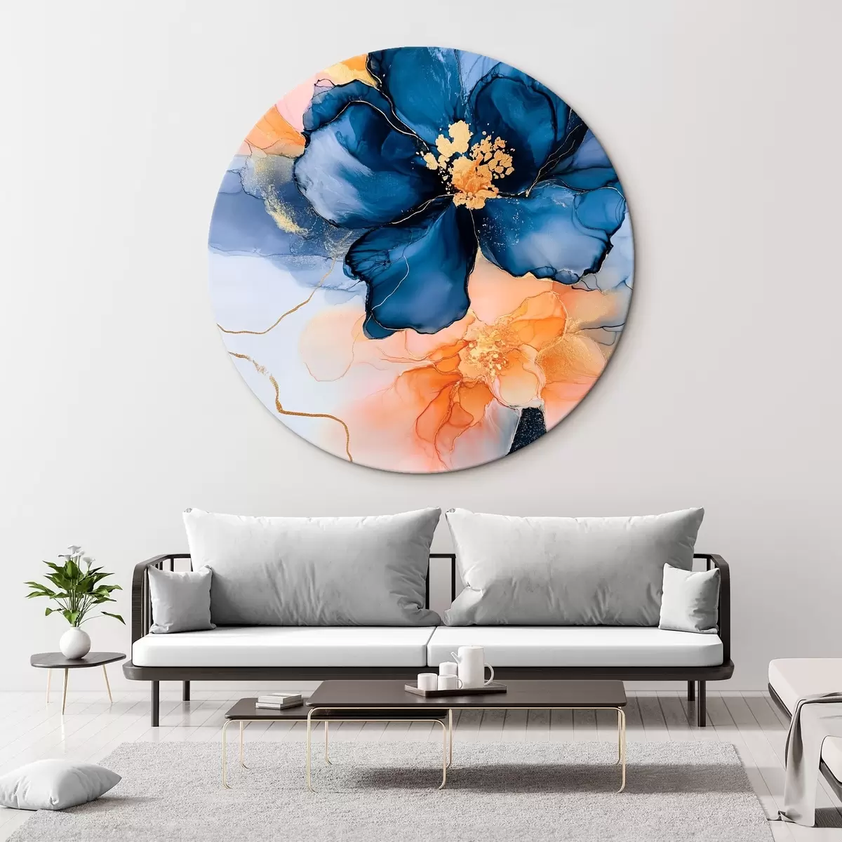 Quadri rotondi I fiori sono disegnati con la tecnica dell'inchiostro ad alcool r42605