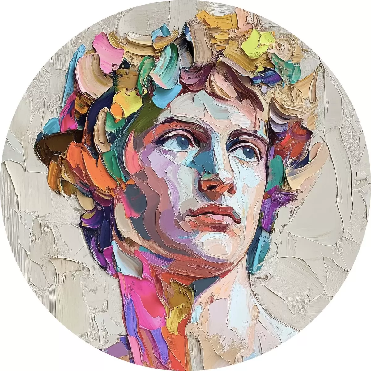 Quadri rotondi Testa di Davide con tratti multicolori r42607