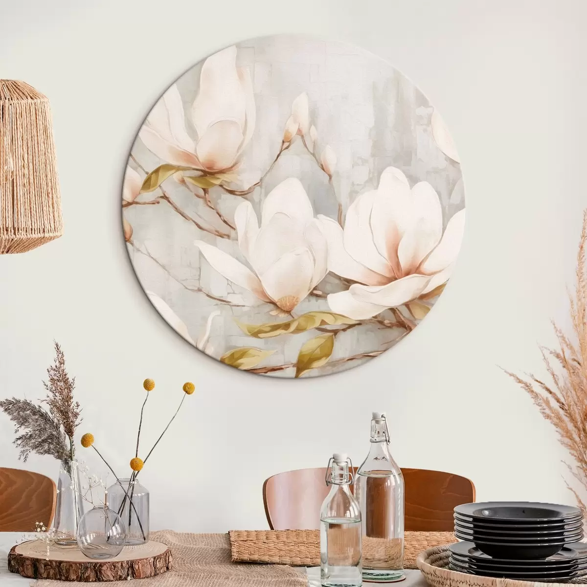 Quadri rotondi Tendenza ramo con fiori di magnolia r42632