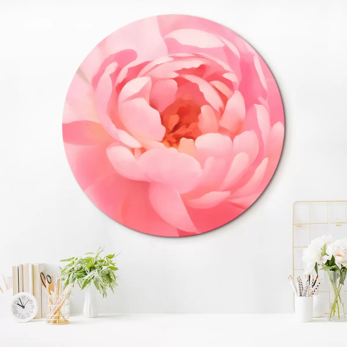 Quadri rotondi Peonia rosa grande r42639