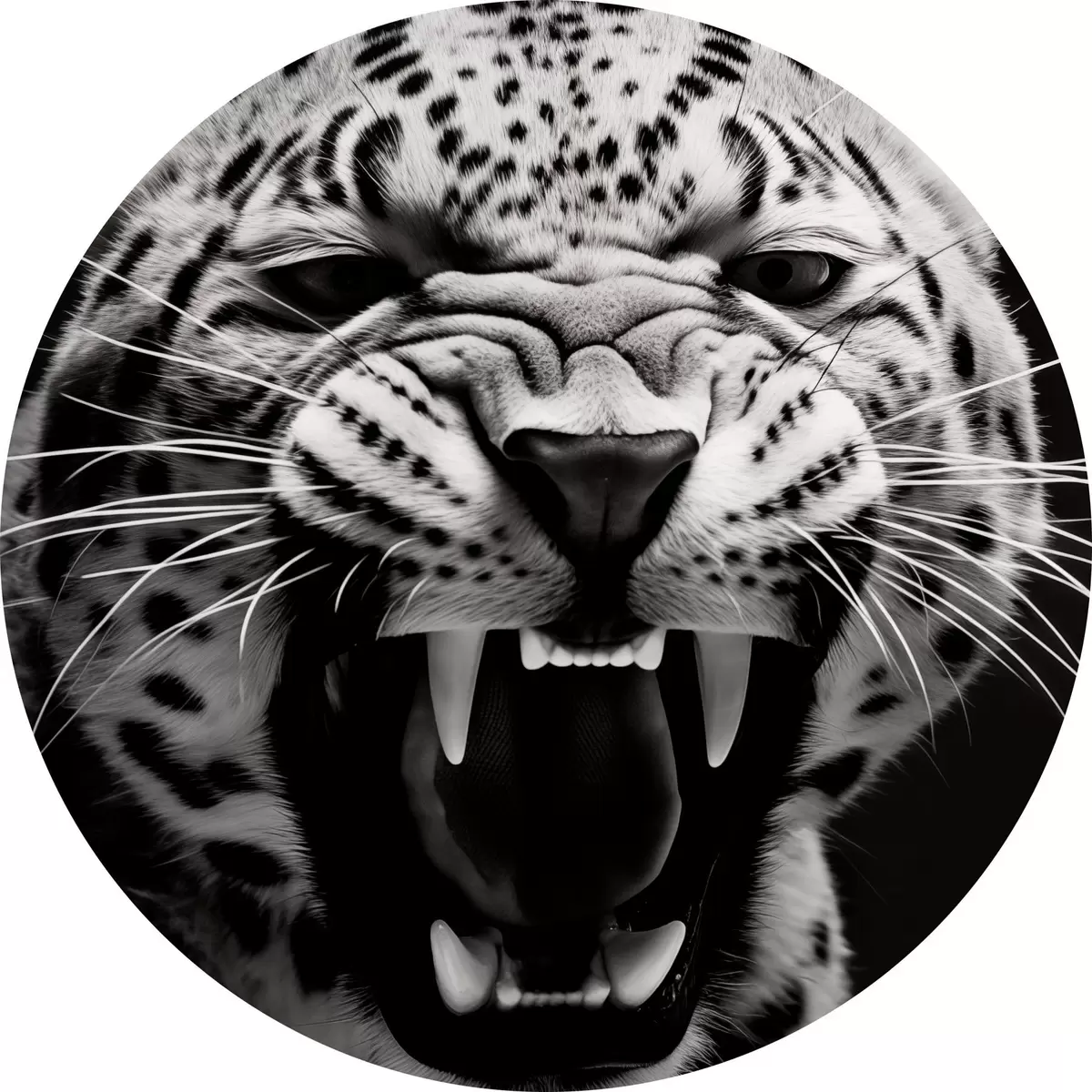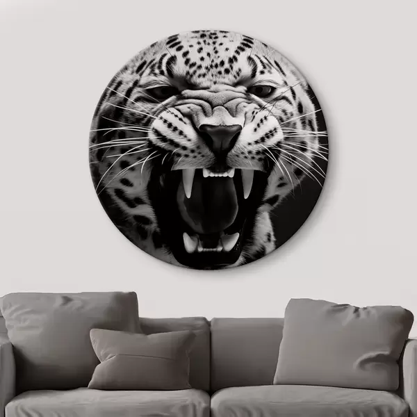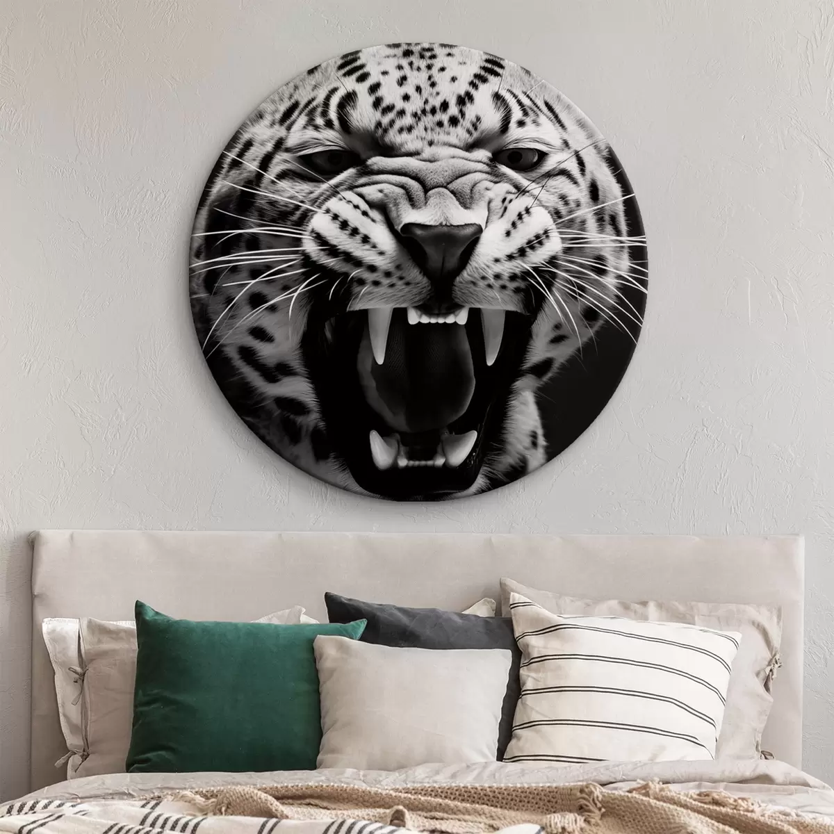 Quadri rotondi Leopardo in stile bianco e nero r42646