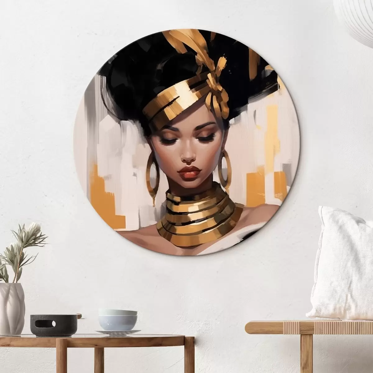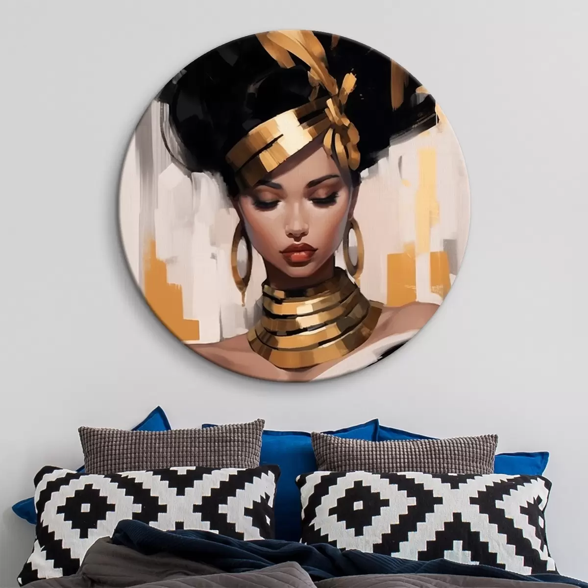 Quadri rotondi Ritratto di donna con stile etnico moderno r42648