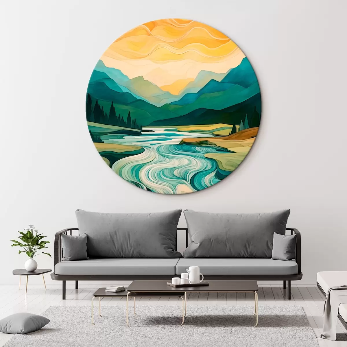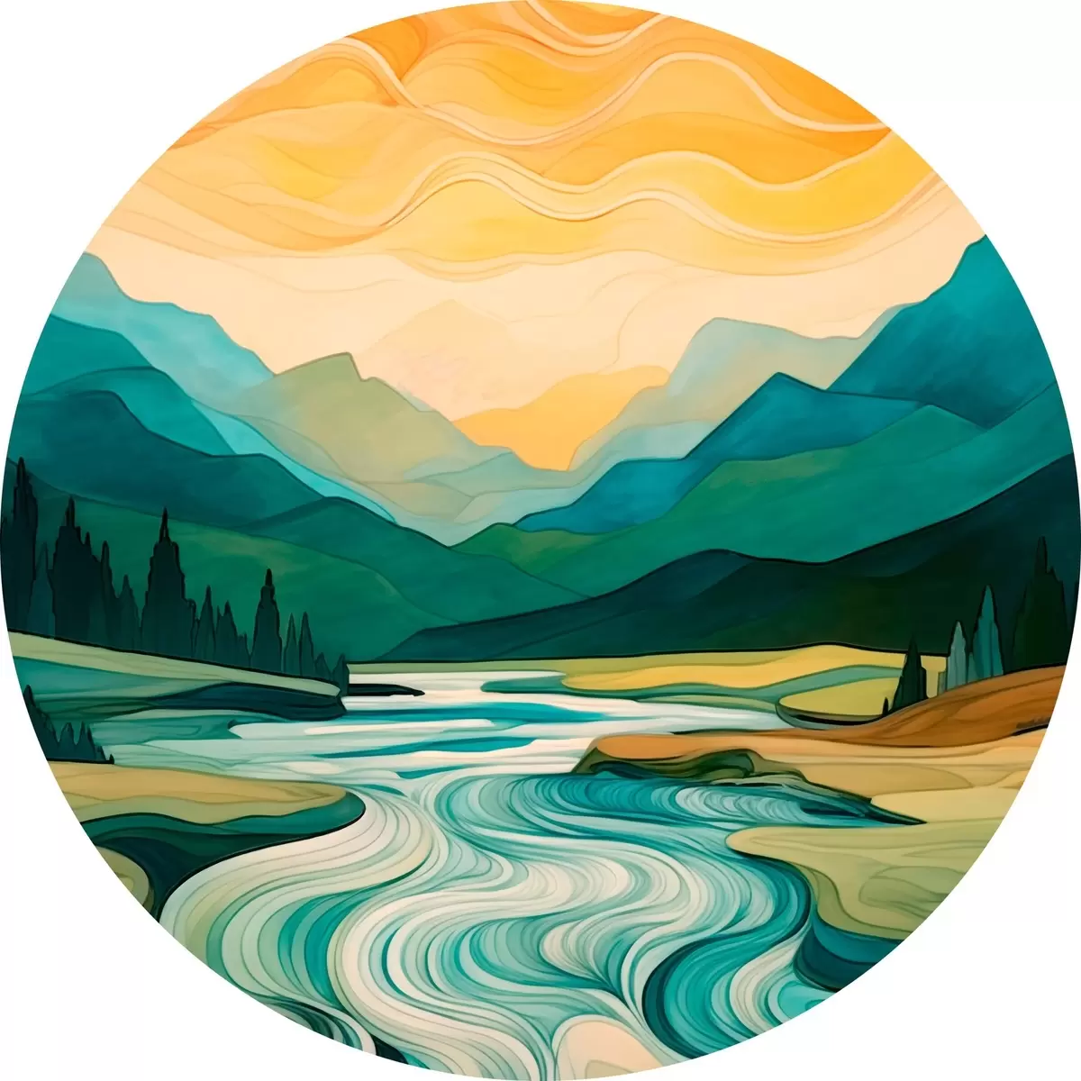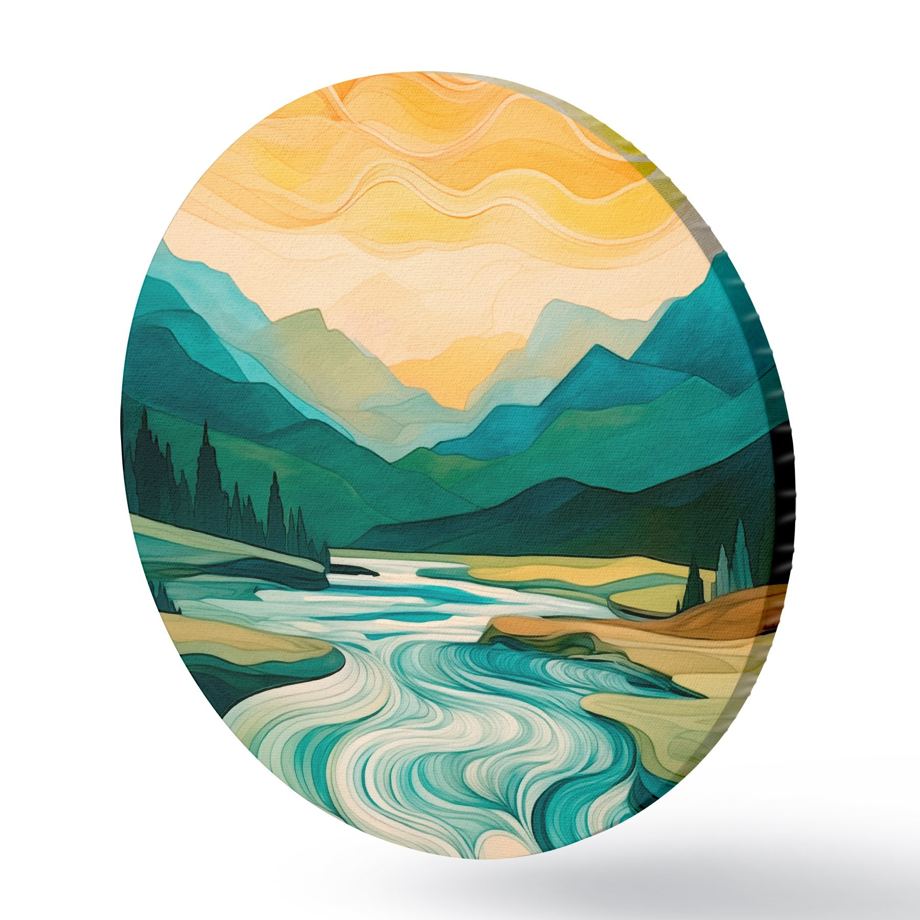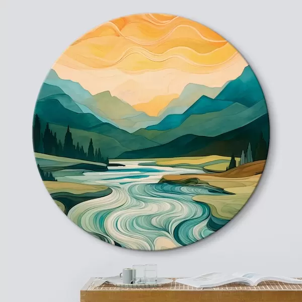 Quadri rotondi Paesaggio con fiume in stile astratto r42652