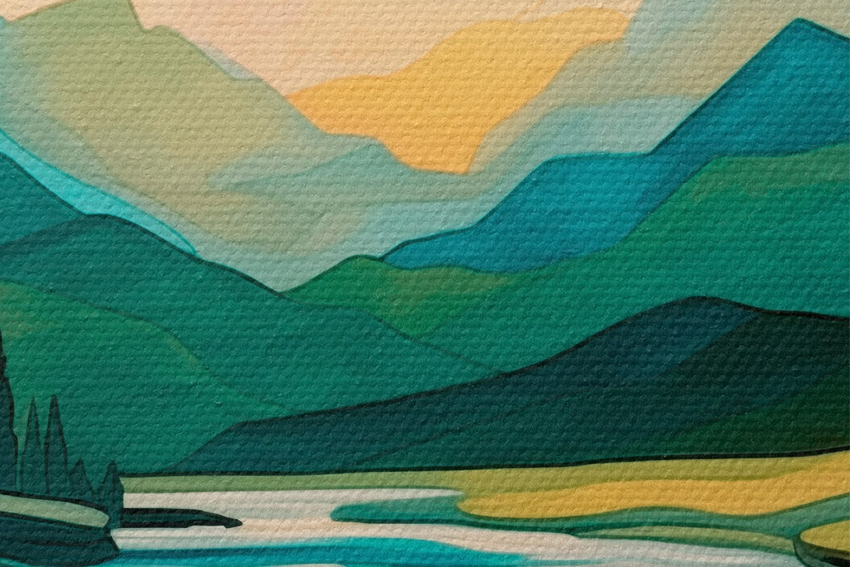 Immagine Paesaggio con fiume in stile astratto Nr r42652