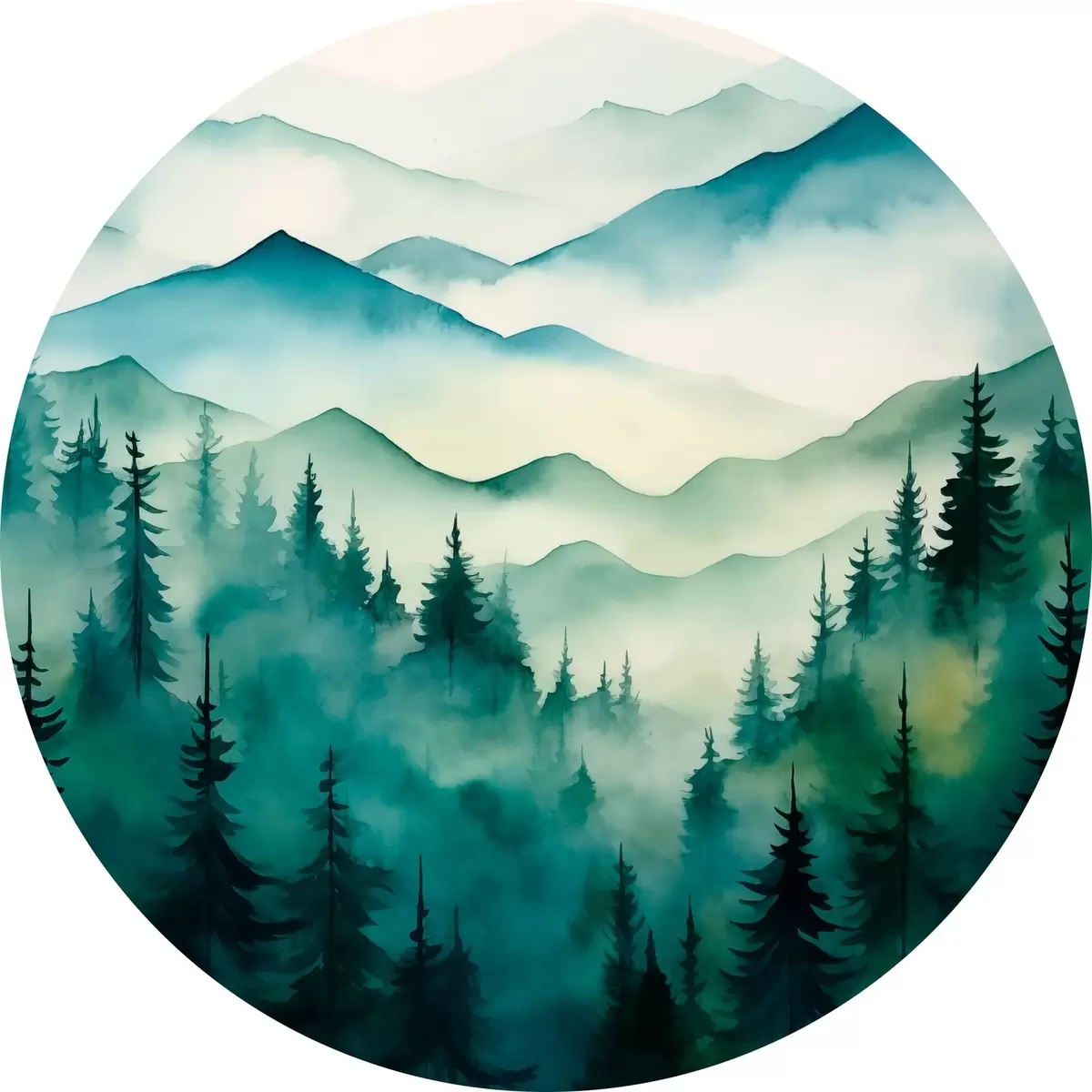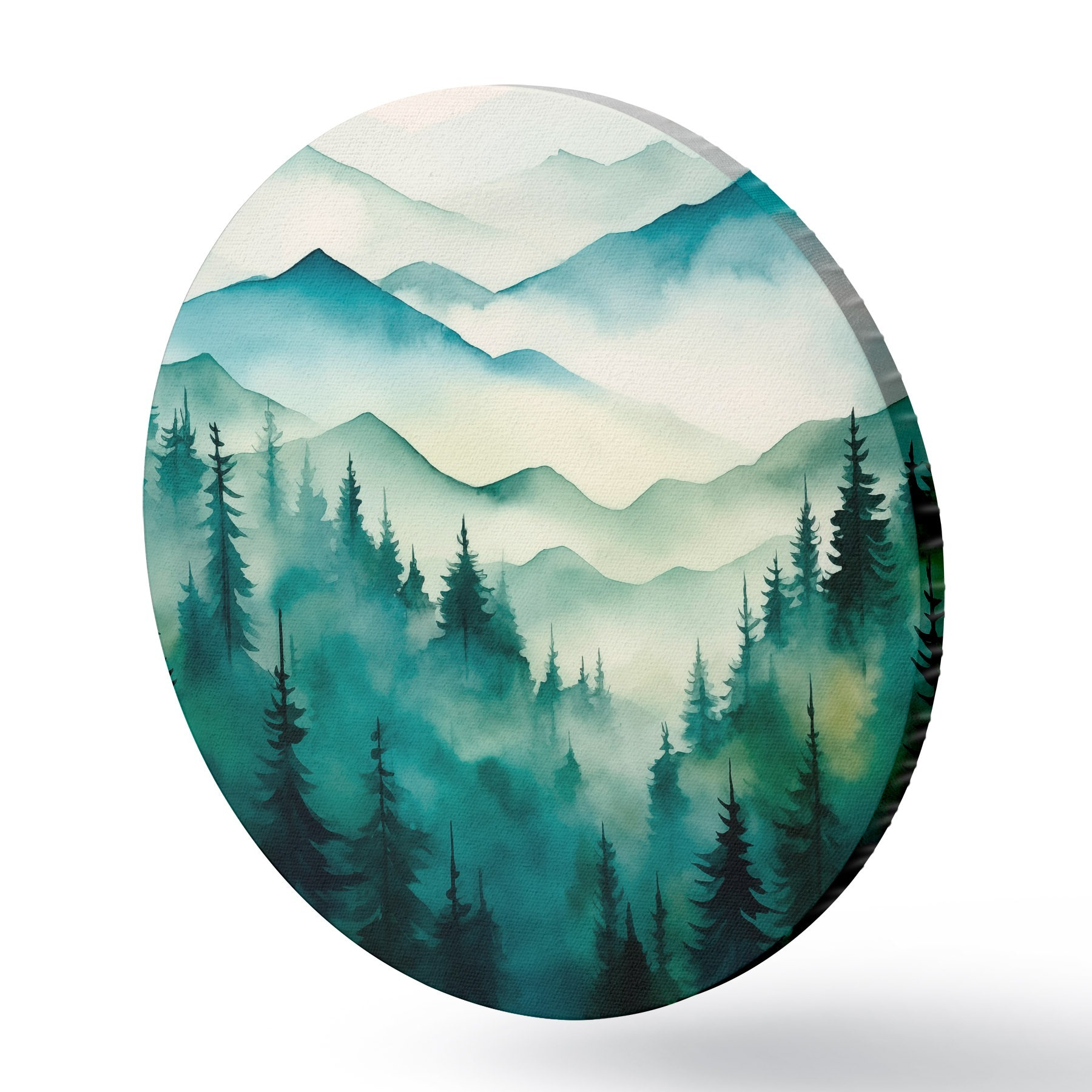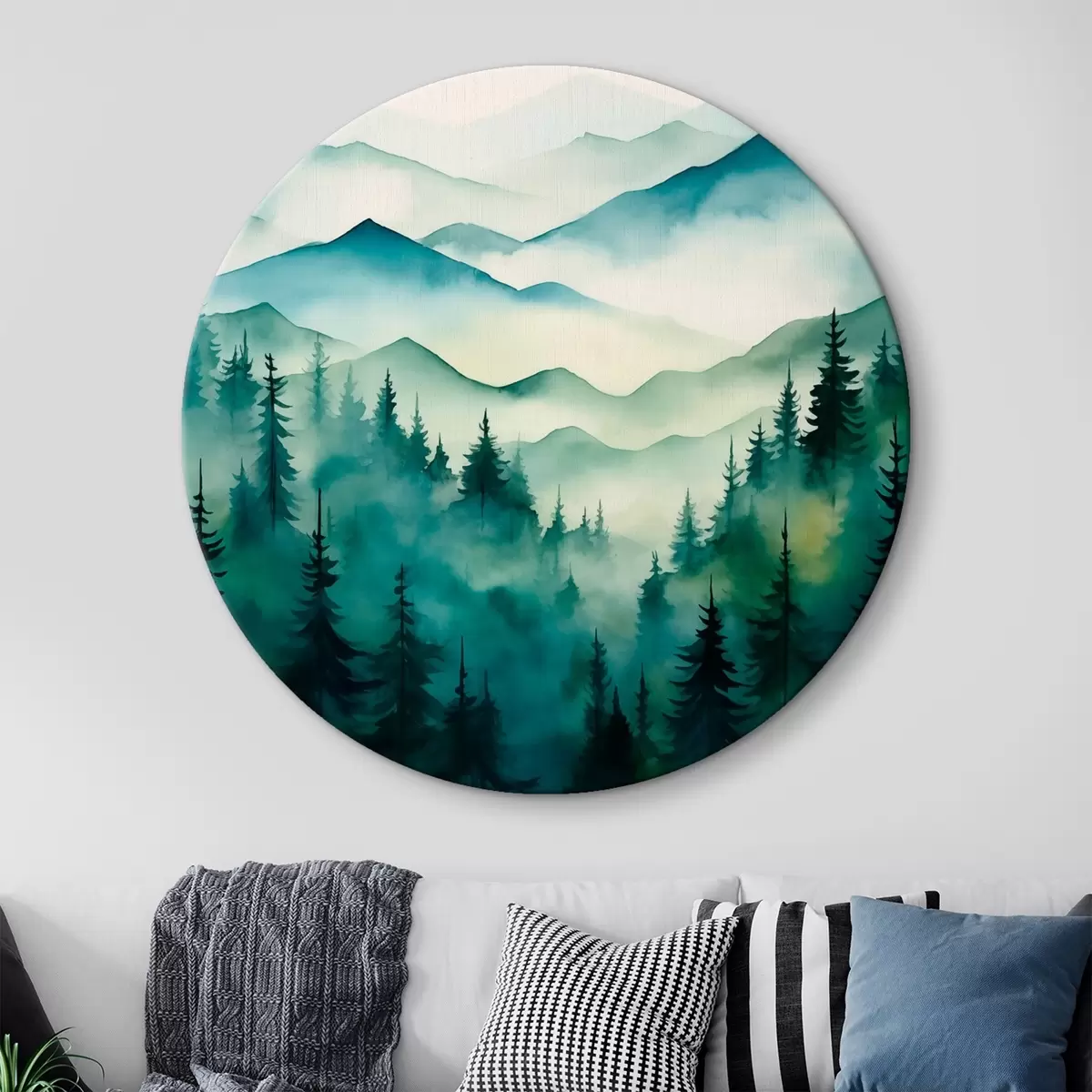 Quadri rotondi Paesaggio nebbioso con montagne e foreste r42662