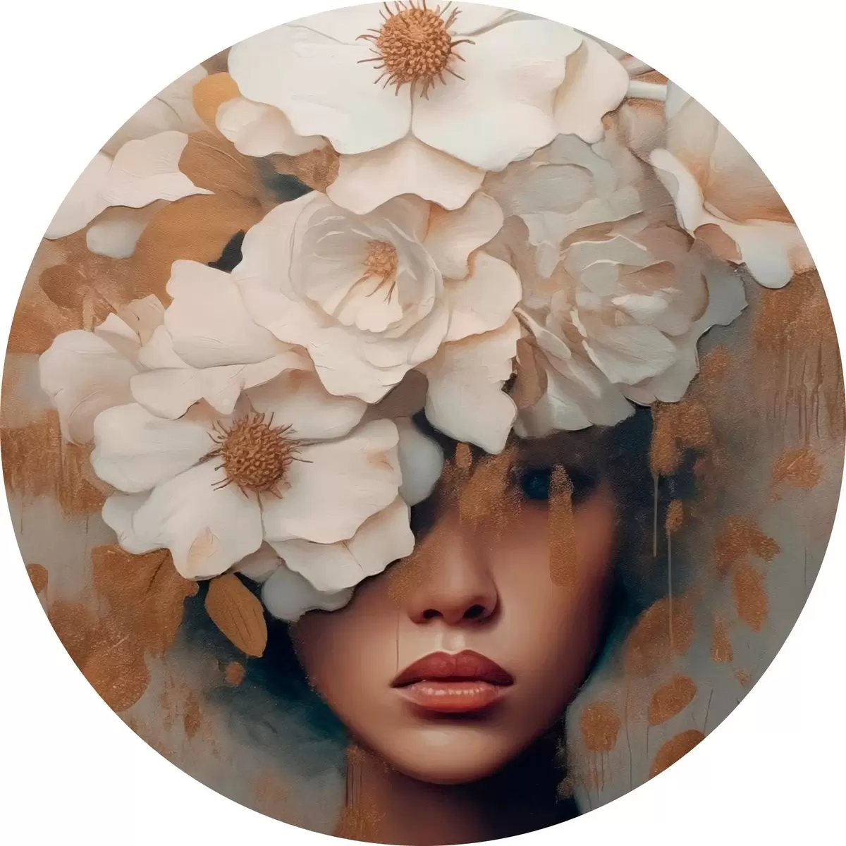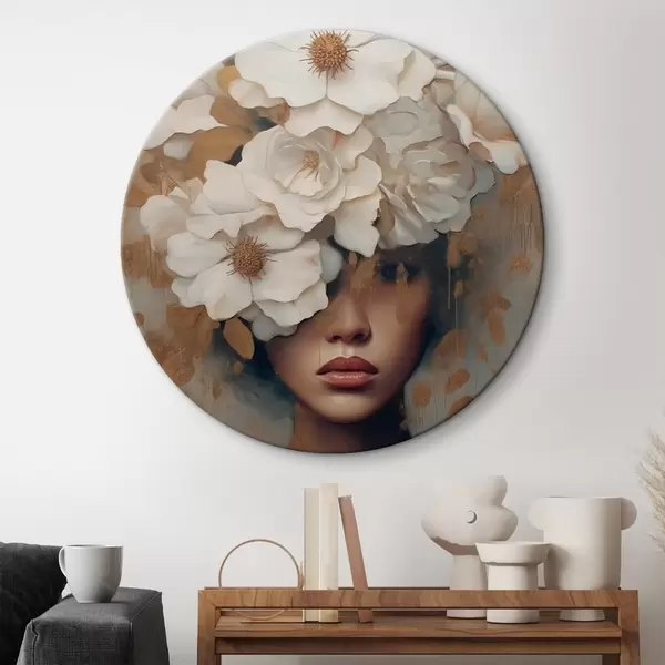 Quadri rotondi Ritratto con fiori bianchi r42664
