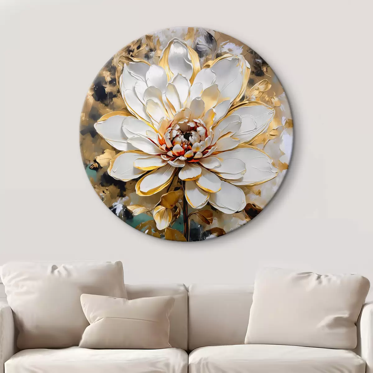 Quadri rotondi Fiore astratto con schizzi di vernice sullo sfondo r42707
