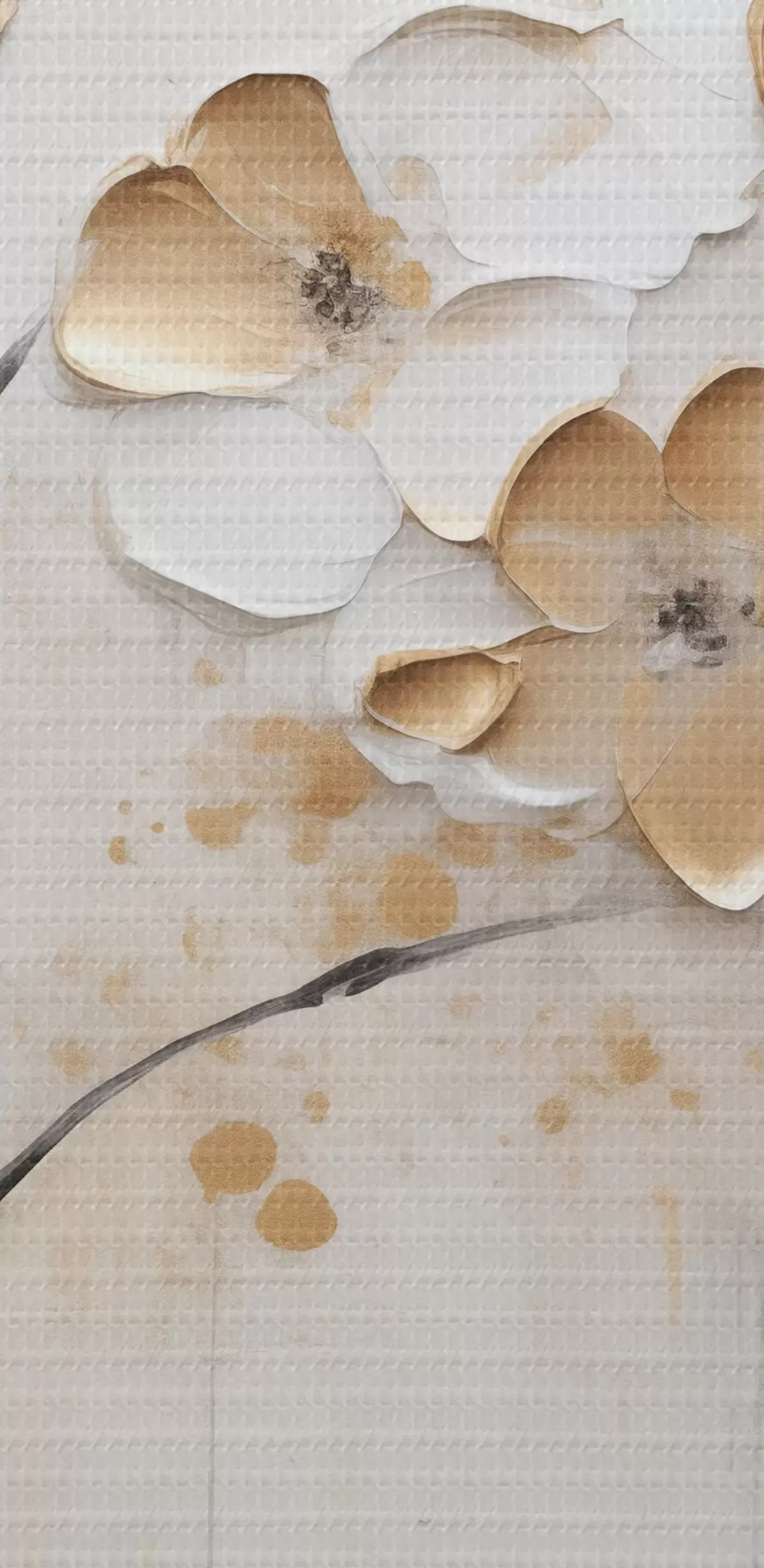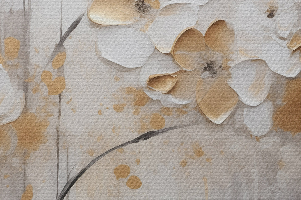 Immagine Fiori con petali strutturati su uno sfondo morbido e tenue con spruzzi di colore astratto e linee verticali Nr r42713