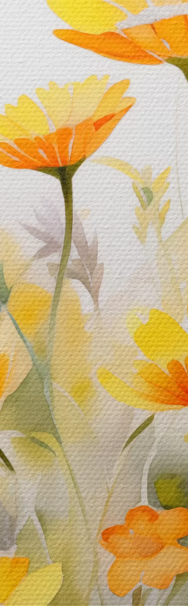 Immagine Un vivace campo di fiori ad acquerello con margherite bianche e arancioni e una farfalla che svolazza nelle vicinanze Nr r42714