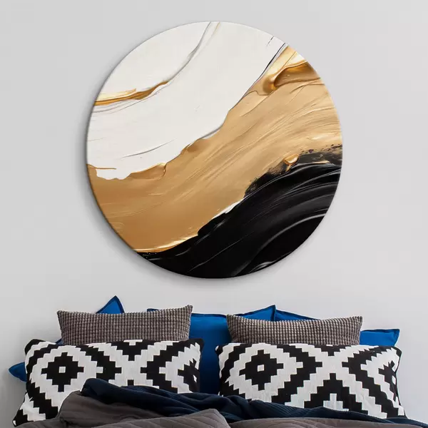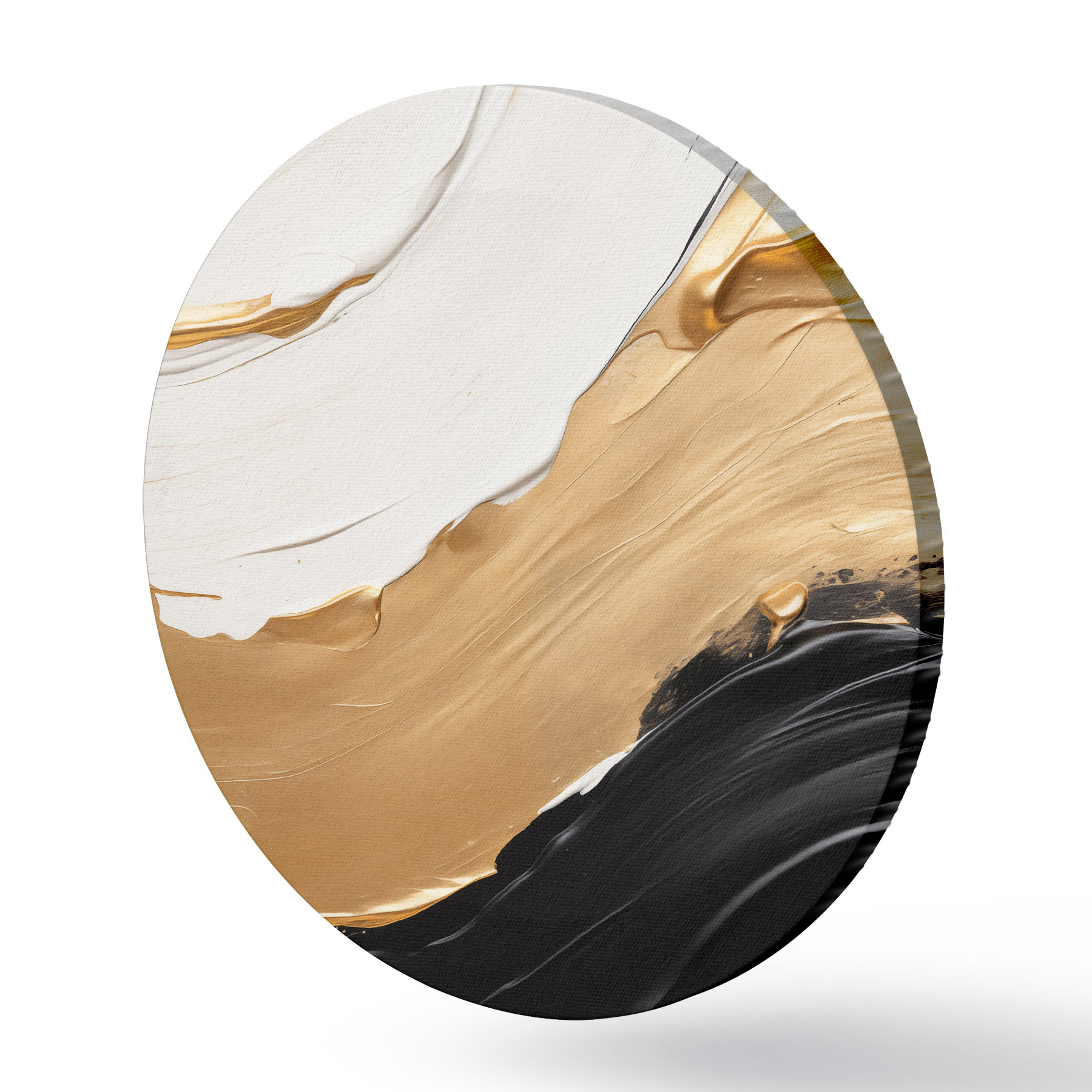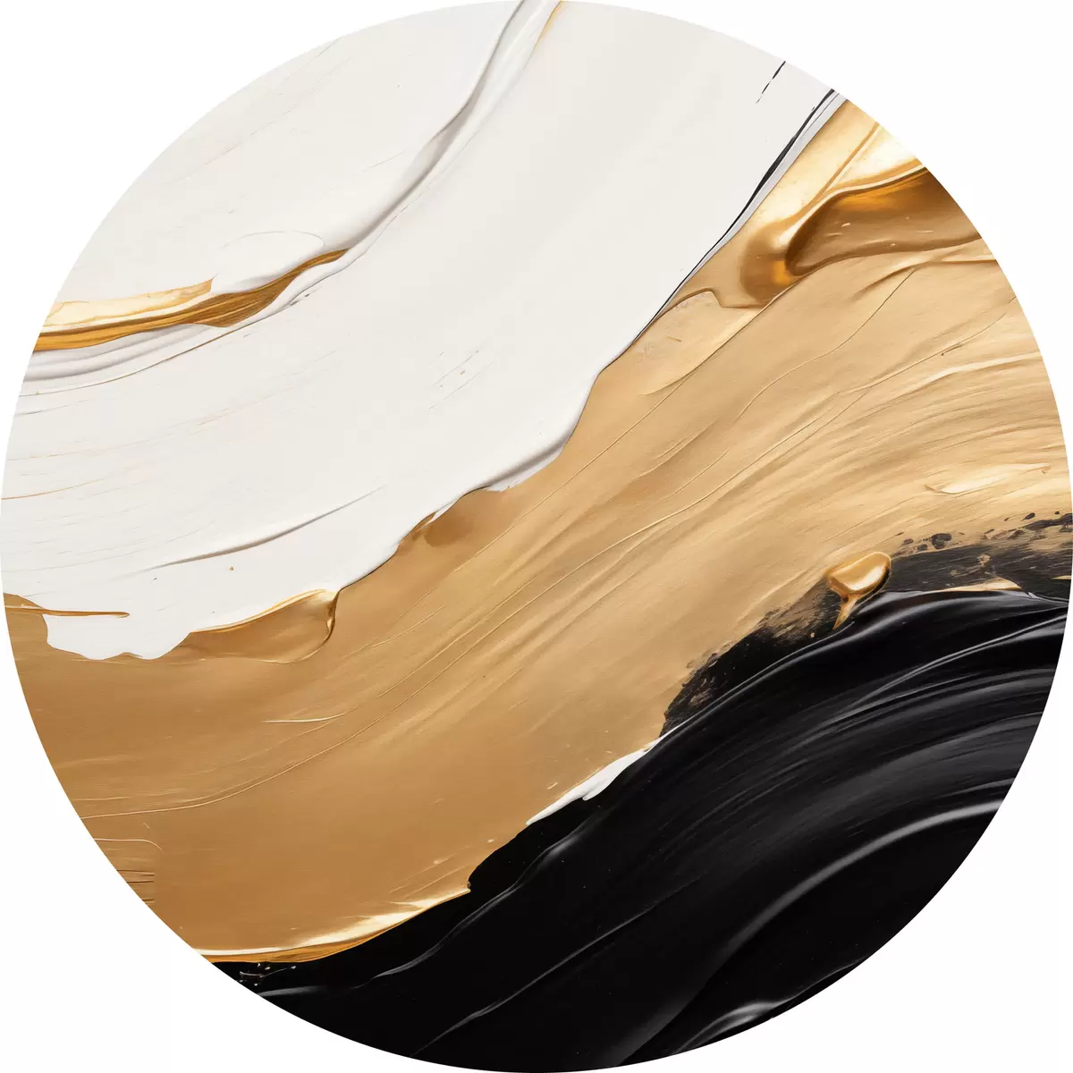 Quadri rotondi Composizione astratta con audaci pennellate di pittura bianca, gialla e nera r42717