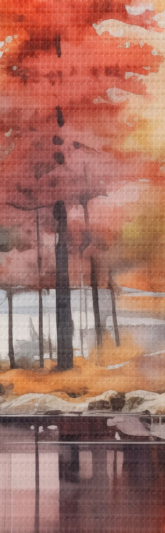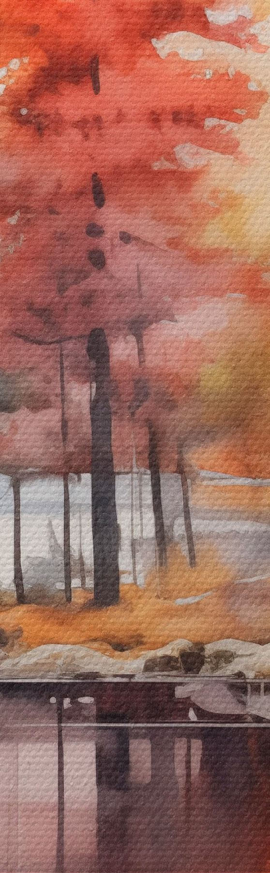 Immagine Paesaggio simile a un acquerello con un lago circondato da alberi dai vivaci colori autunnali Nr r42727