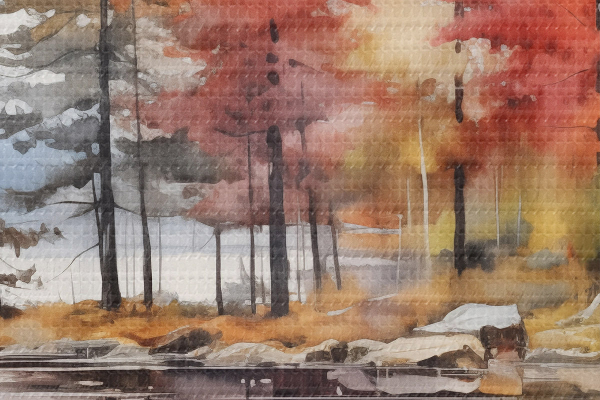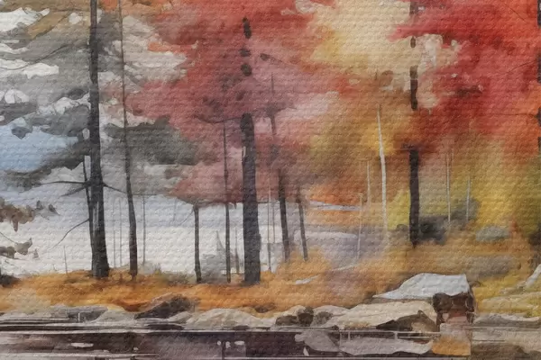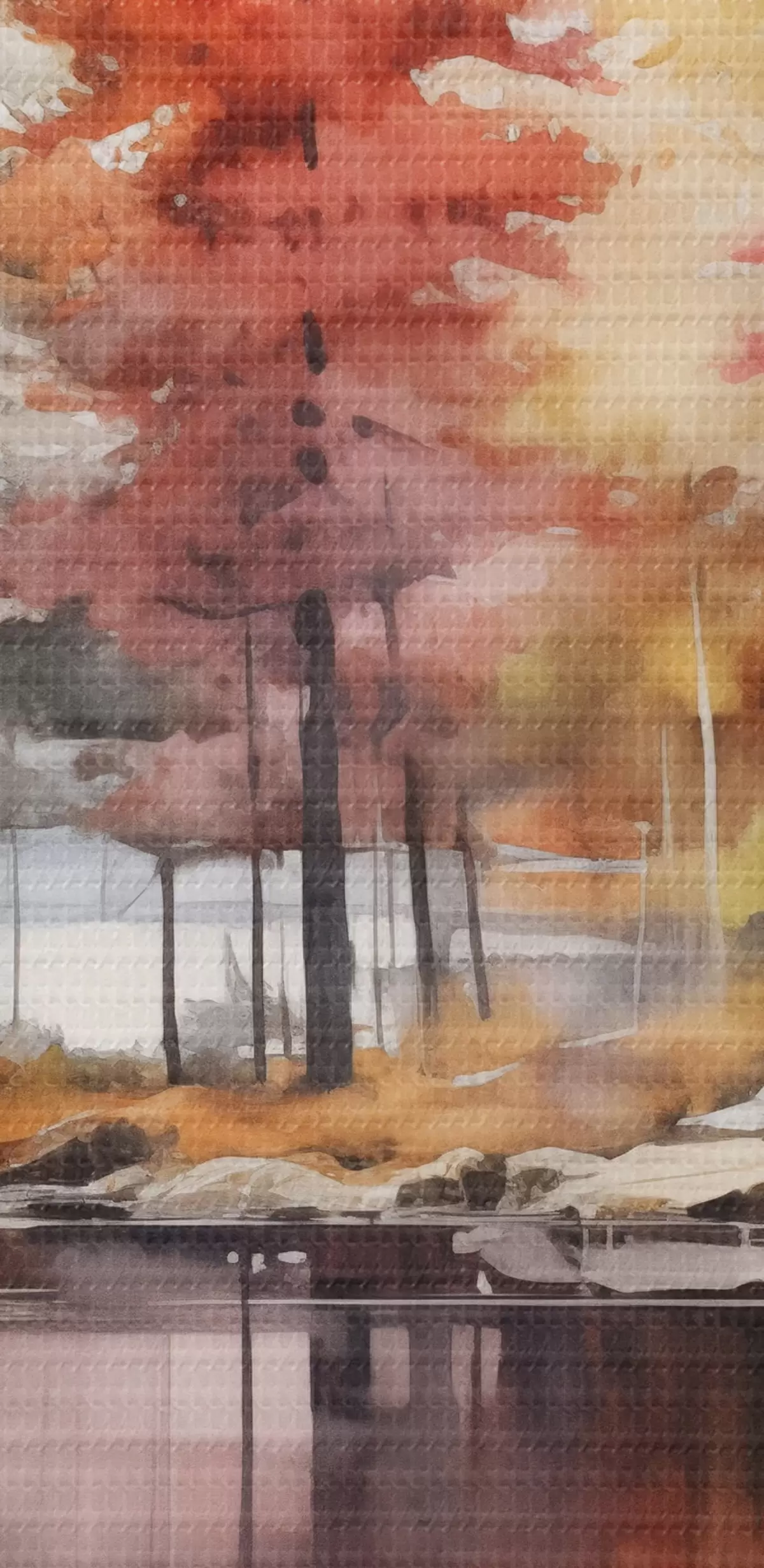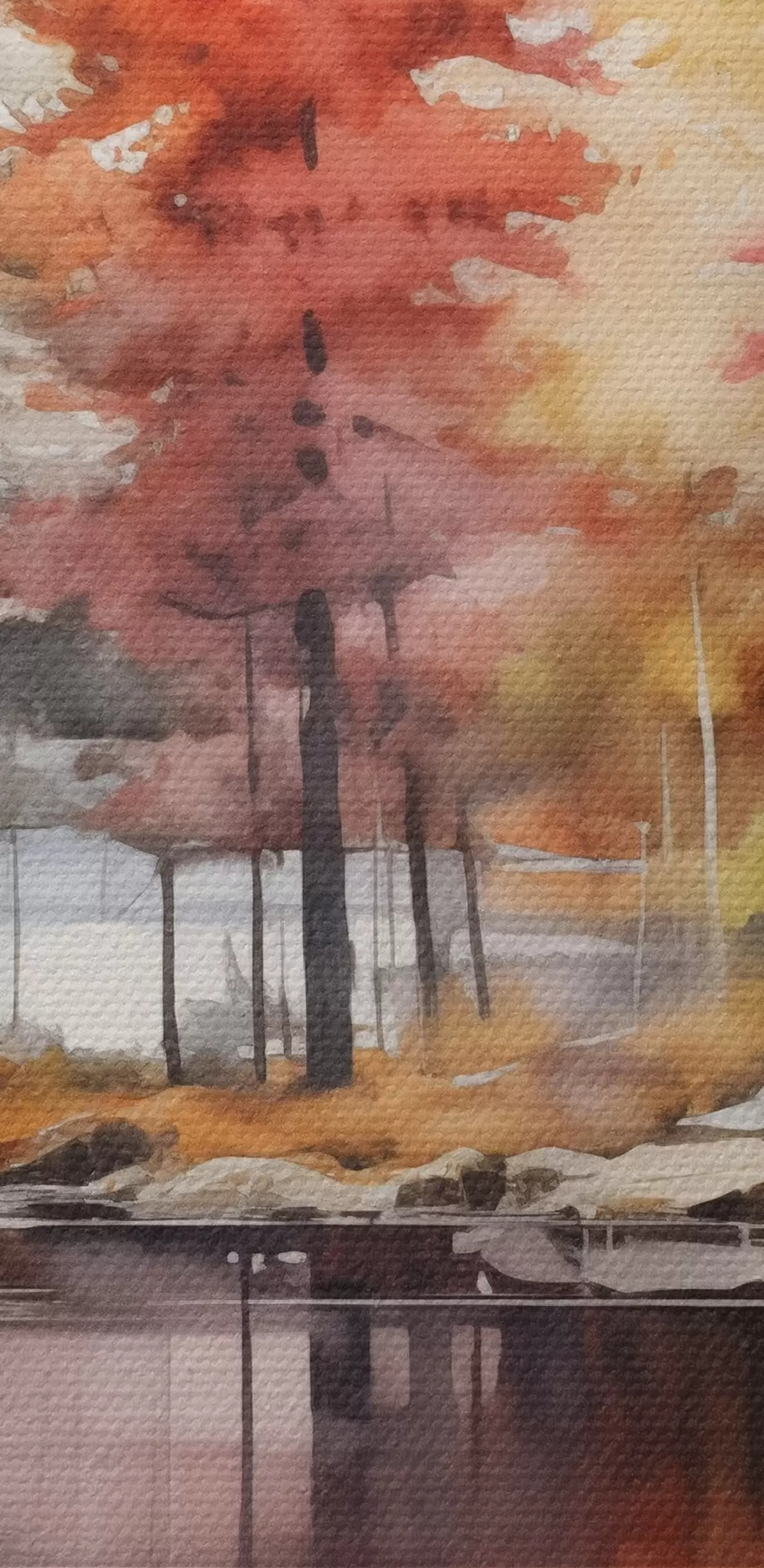 Immagine Paesaggio simile a un acquerello con un lago circondato da alberi dai vivaci colori autunnali Nr r42727