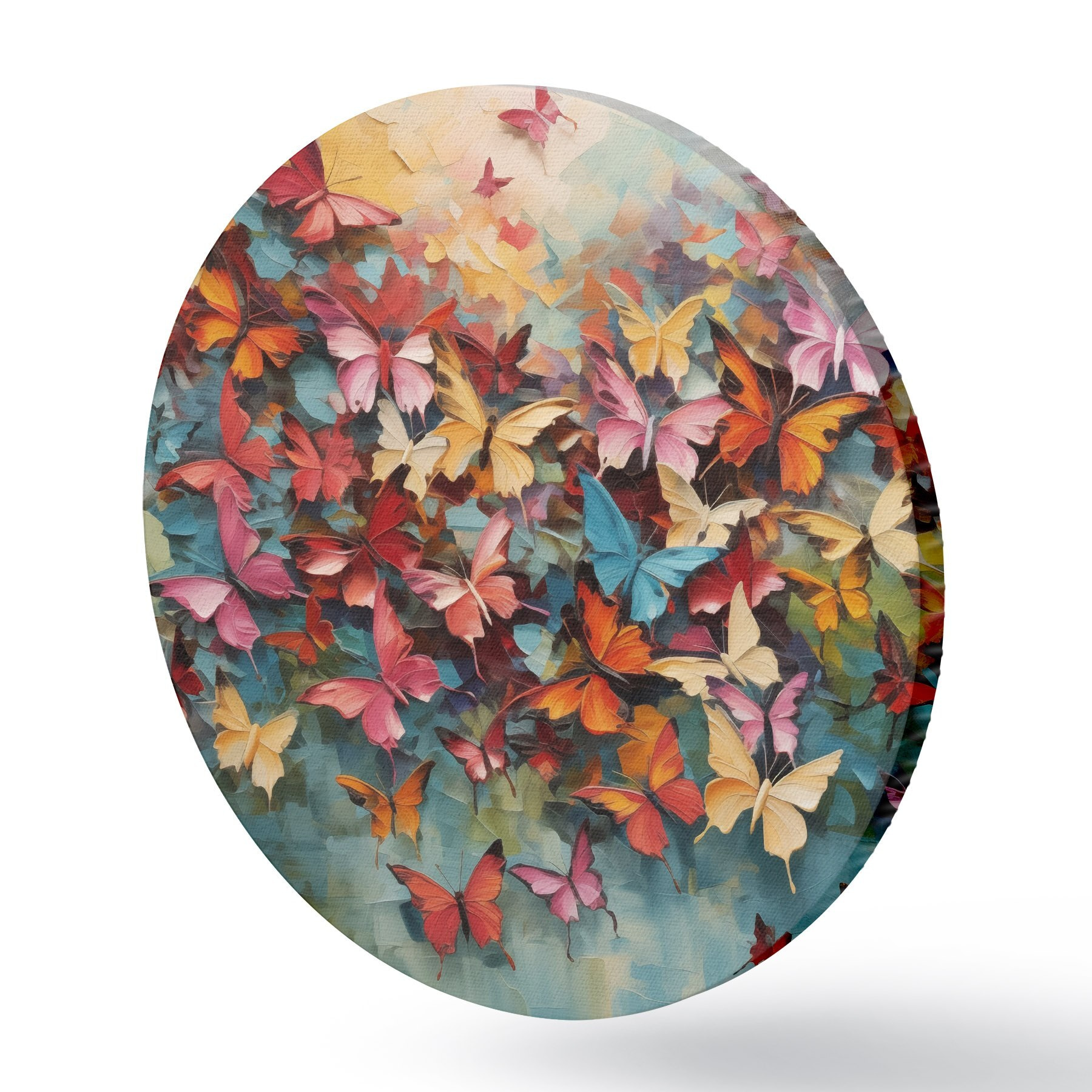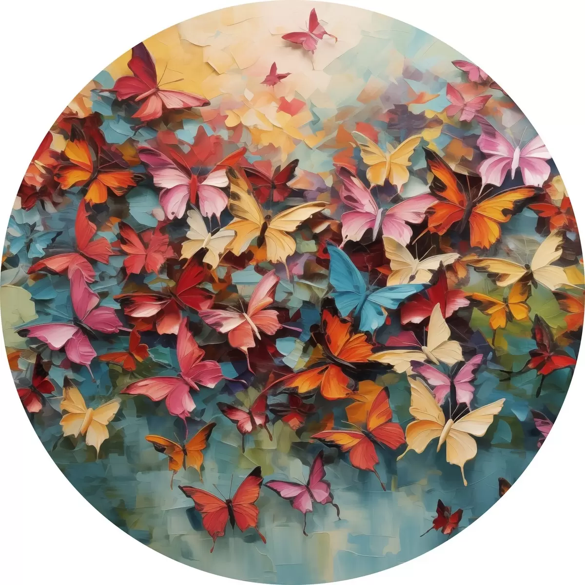 Quadri rotondi Una vivace serie di farfalle in vari colori a imitazione della pittura a olio r42728