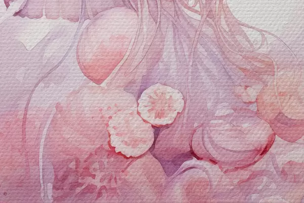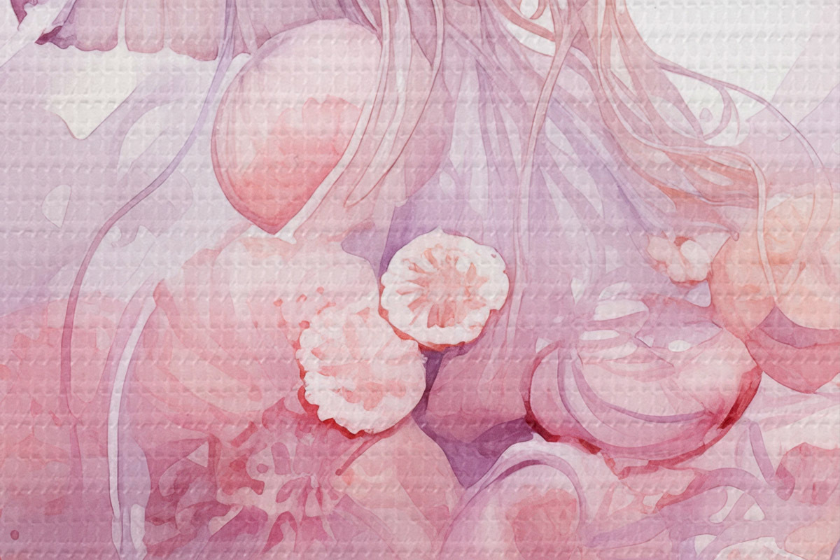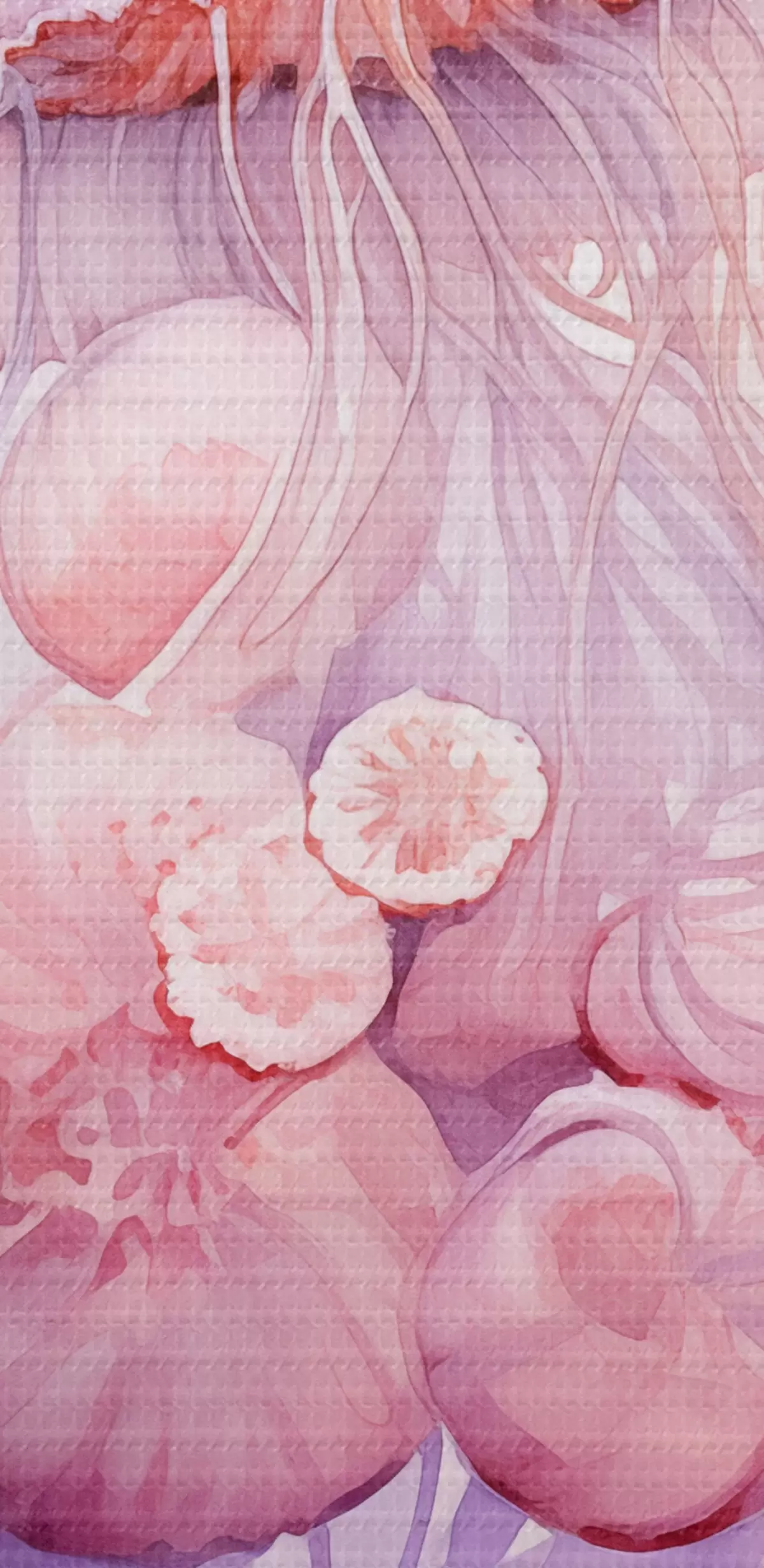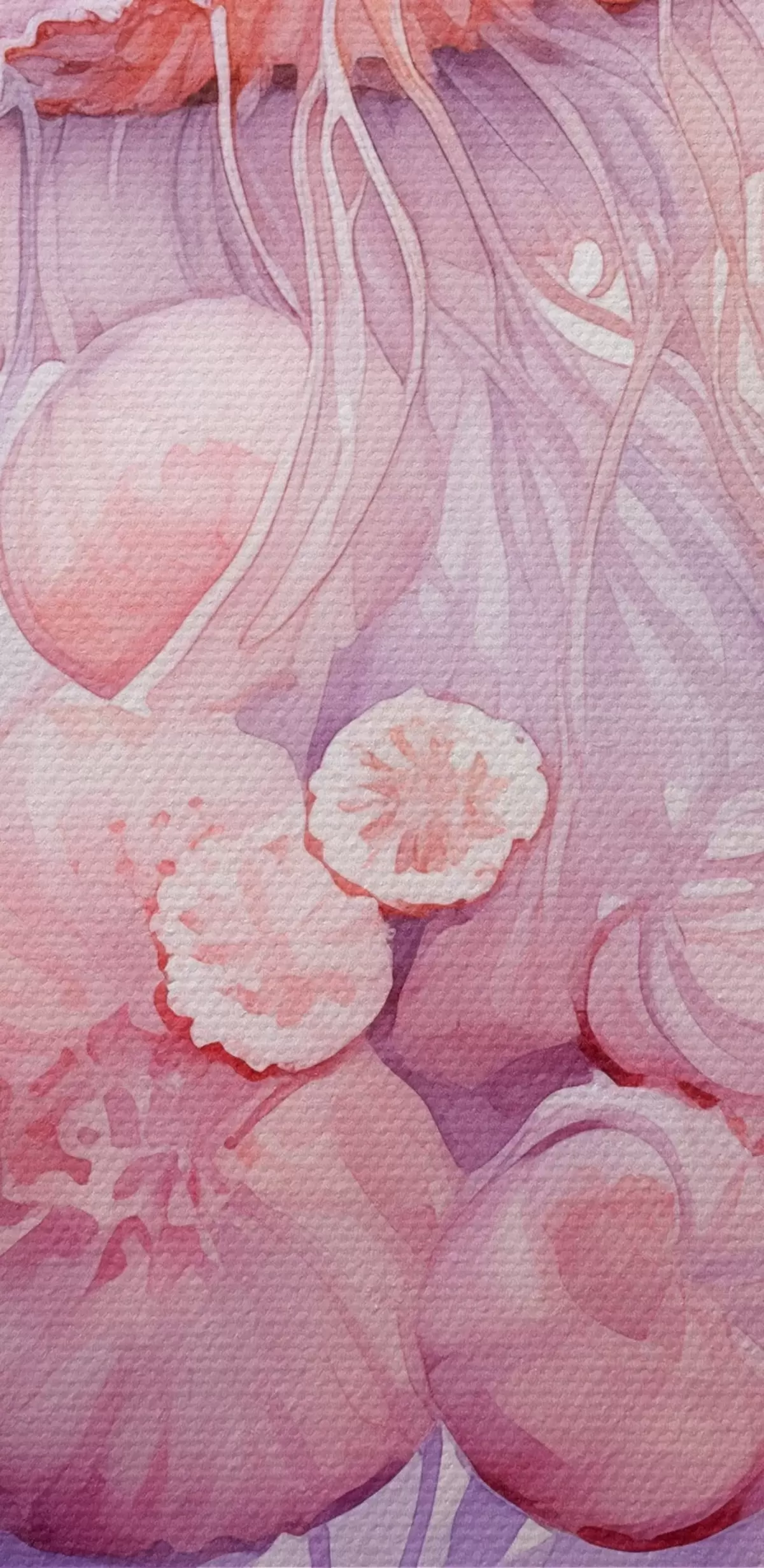 Immagine Meduse rosa che fluttuano in un turbinio di colori rosa e viola, circondate da forme astratte Nr r42730