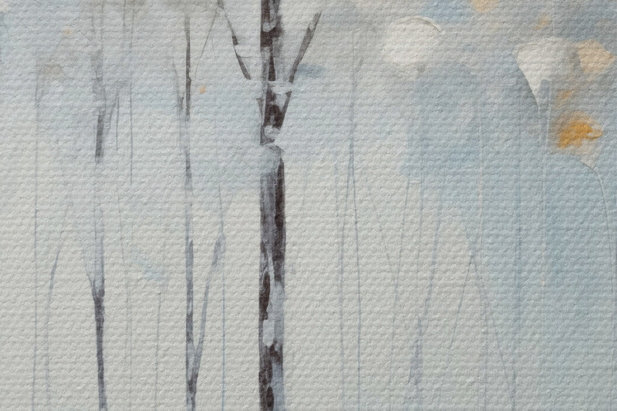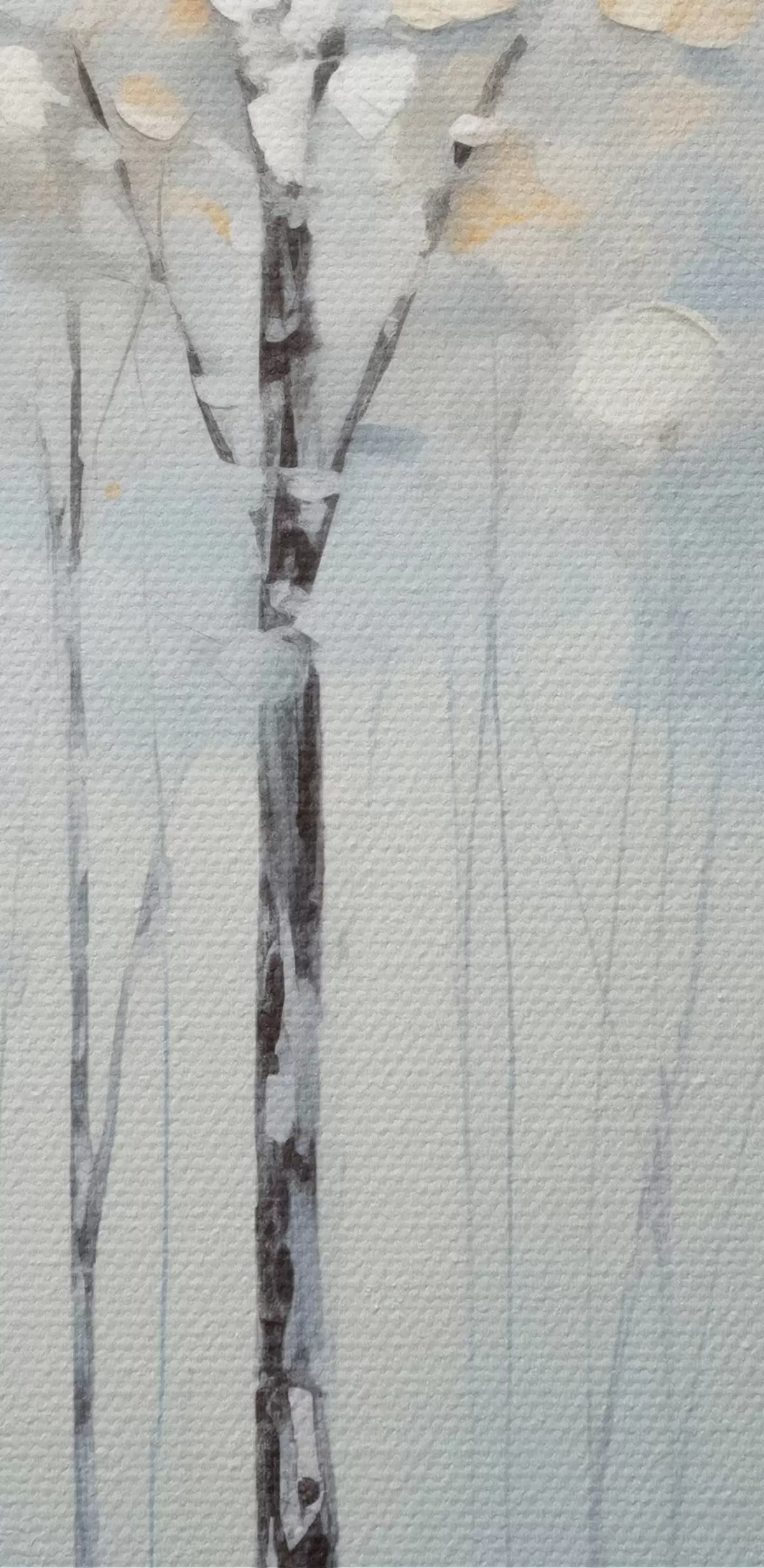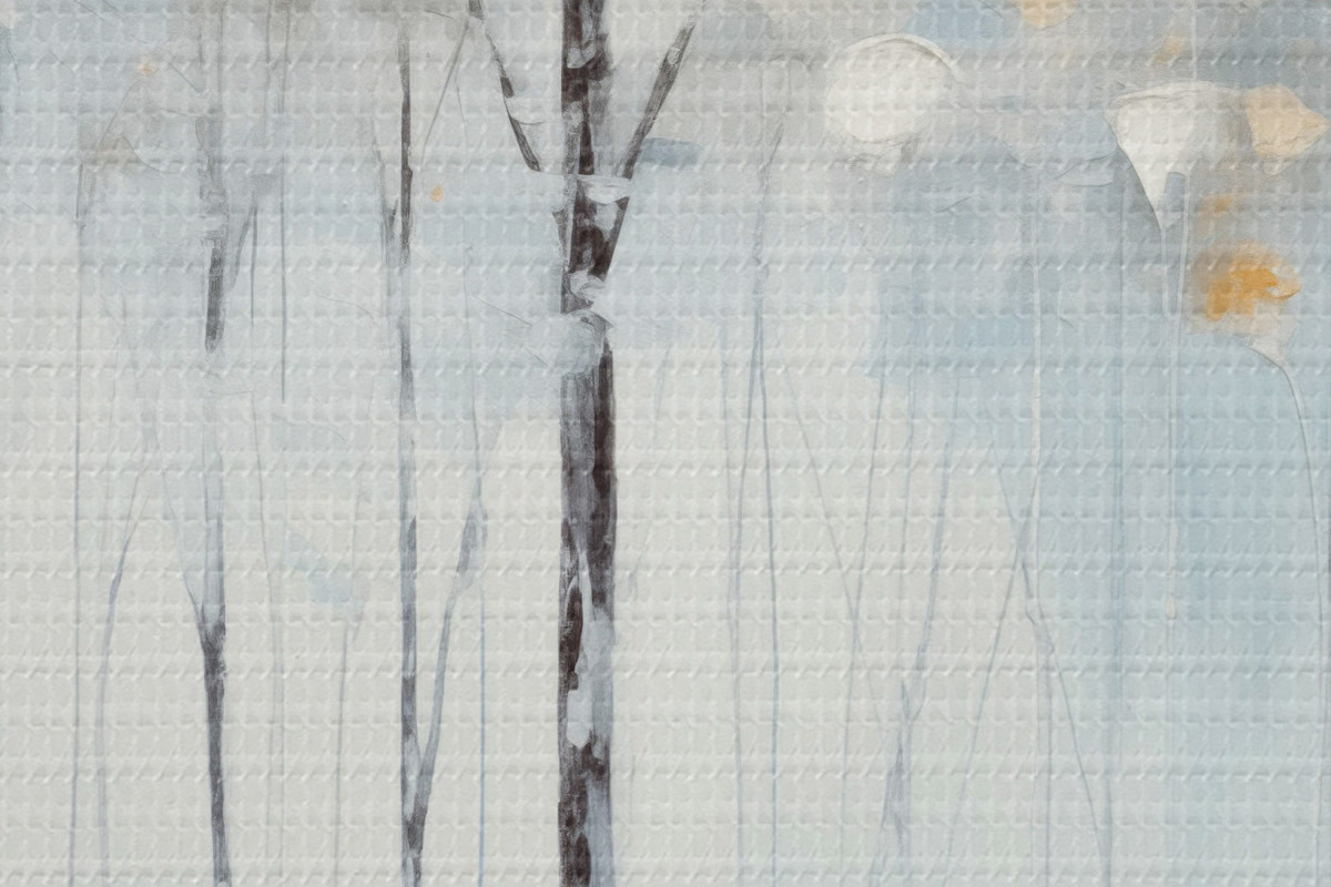 Immagine Alberi alti e slanciati con foglie blu e accenni di giallo su uno sfondo blu tenue, imitazione di pittura a olio Nr r42731
