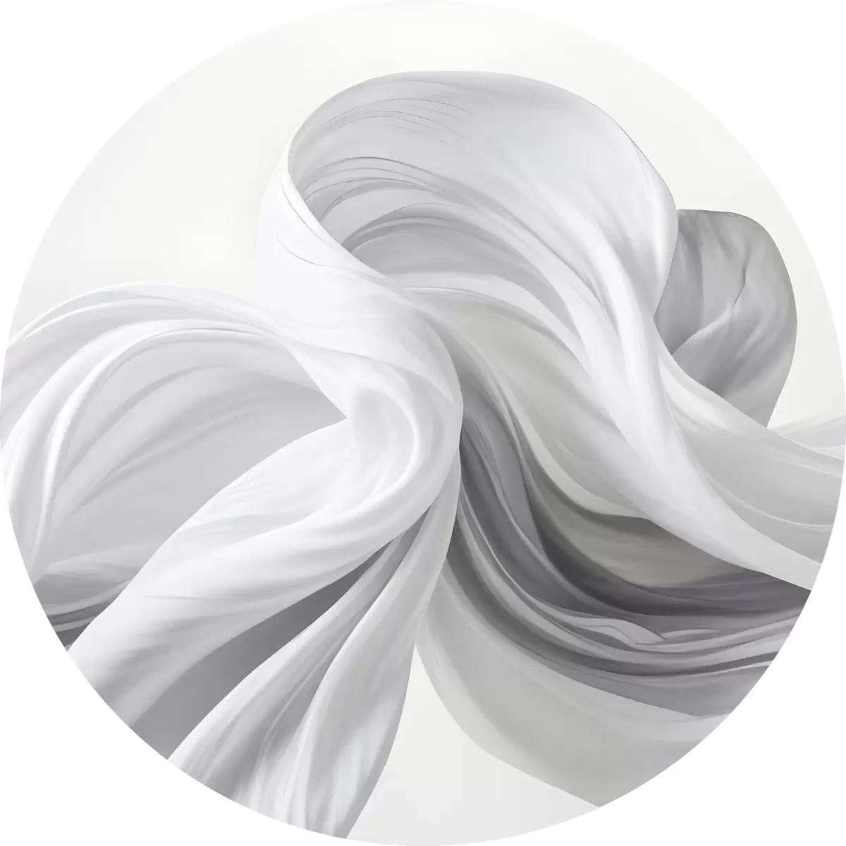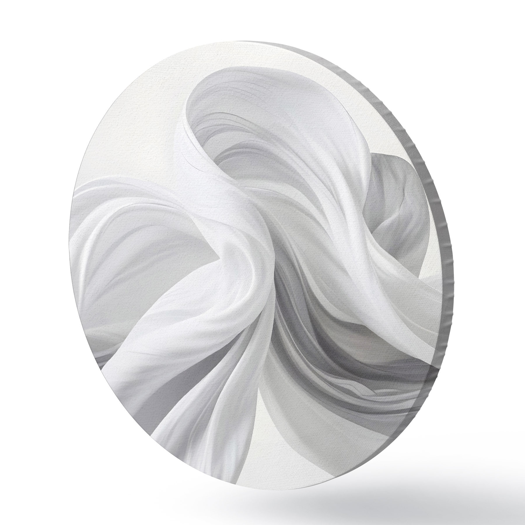 Quadri rotondi Forme fluide simili a tessuti bianchi e grigi che si intrecciano vorticosamente su uno sfondo chiaro r42732