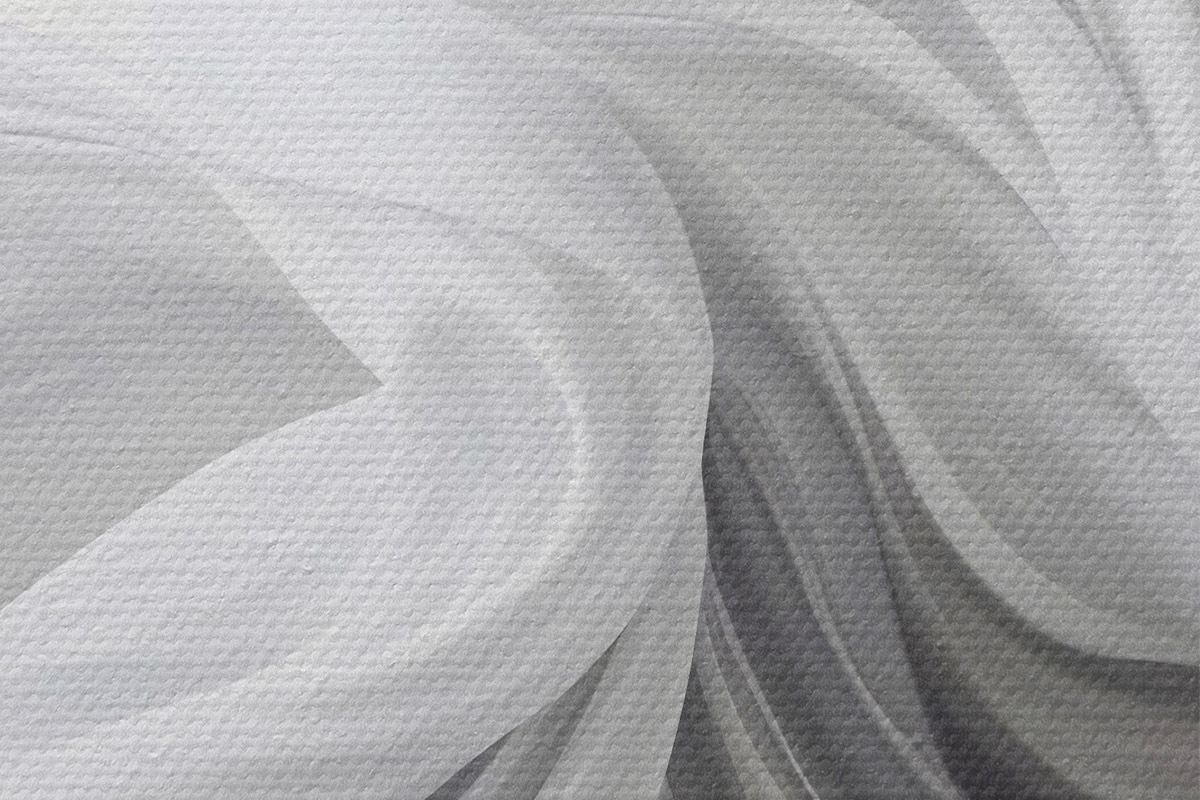 Immagine Forme fluide simili a tessuti bianchi e grigi che si intrecciano vorticosamente su uno sfondo chiaro Nr r42732