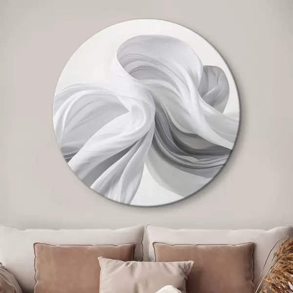 Quadri rotondi Forme fluide simili a tessuti bianchi e grigi che si intrecciano vorticosamente su uno sfondo chiaro r42732