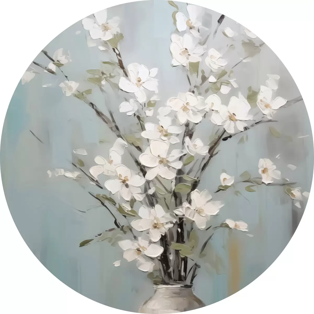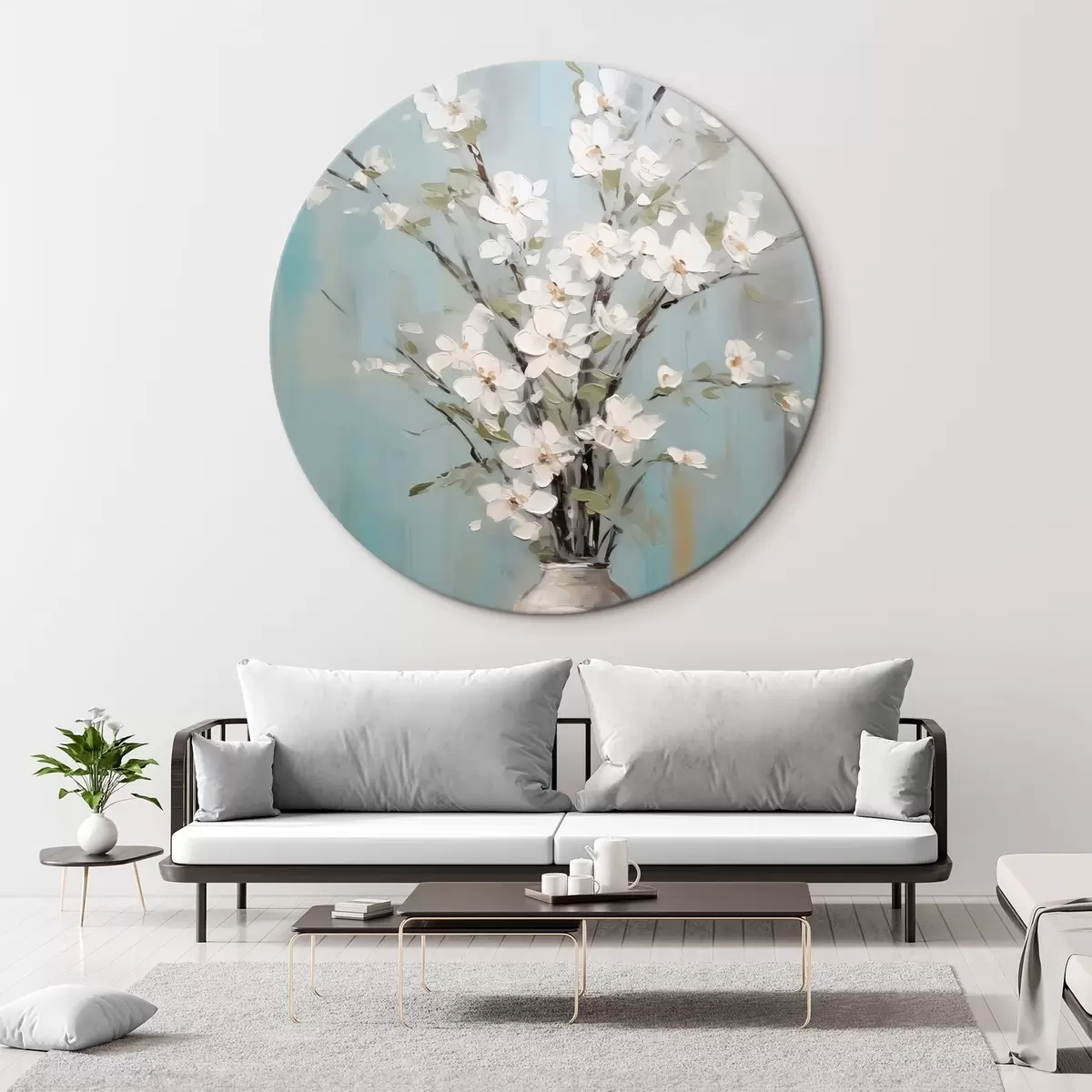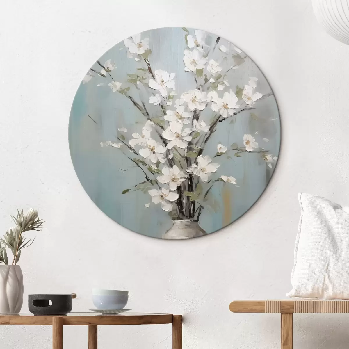 Quadri rotondi Rami con fiori bianchi in un vaso r42746