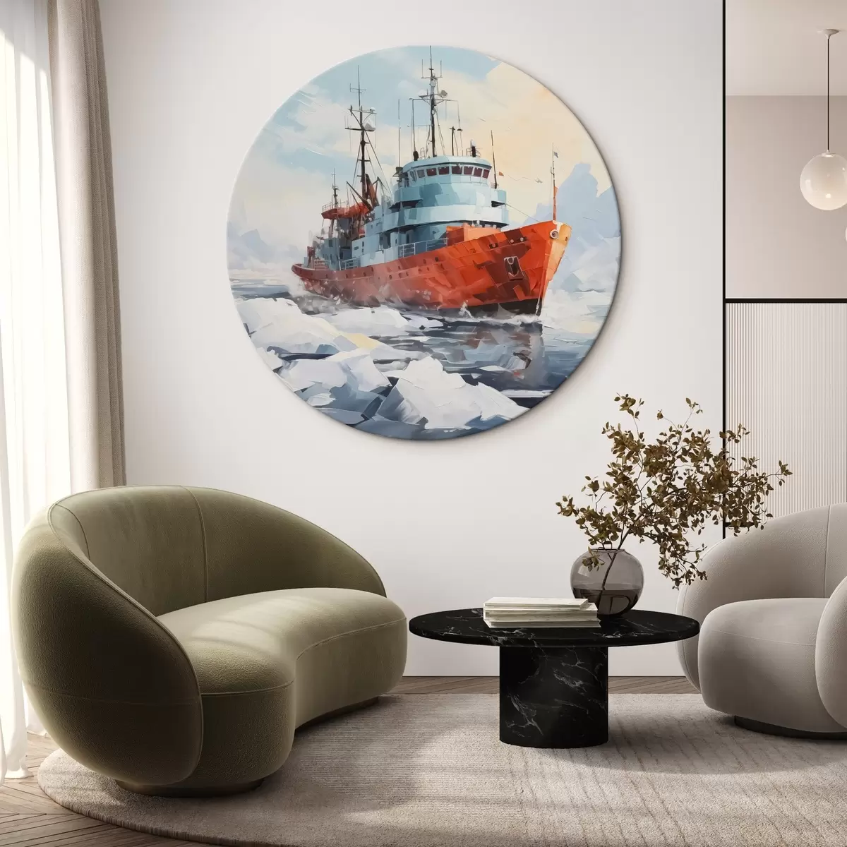 Quadri rotondi Nave rossa tra i ghiacci r42750