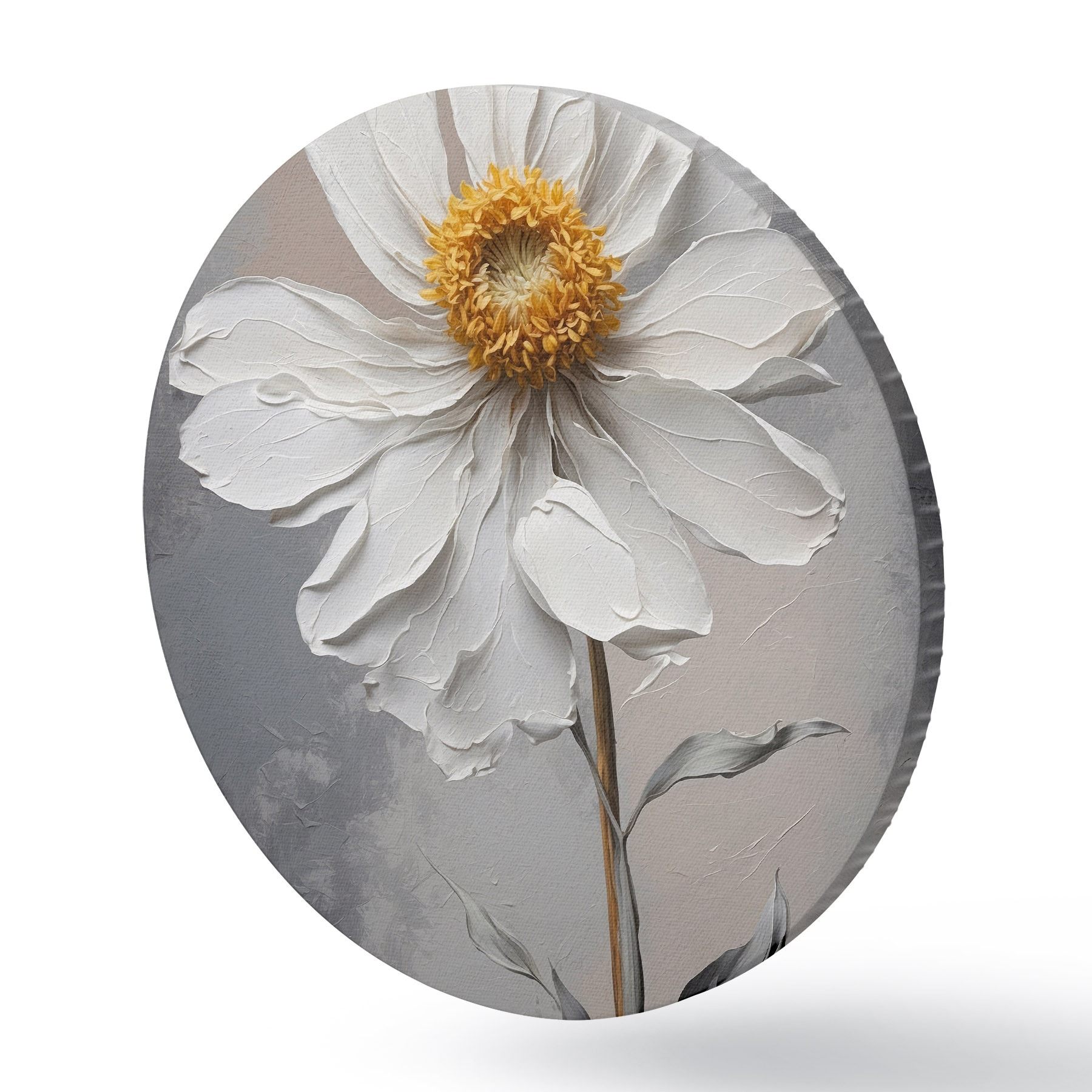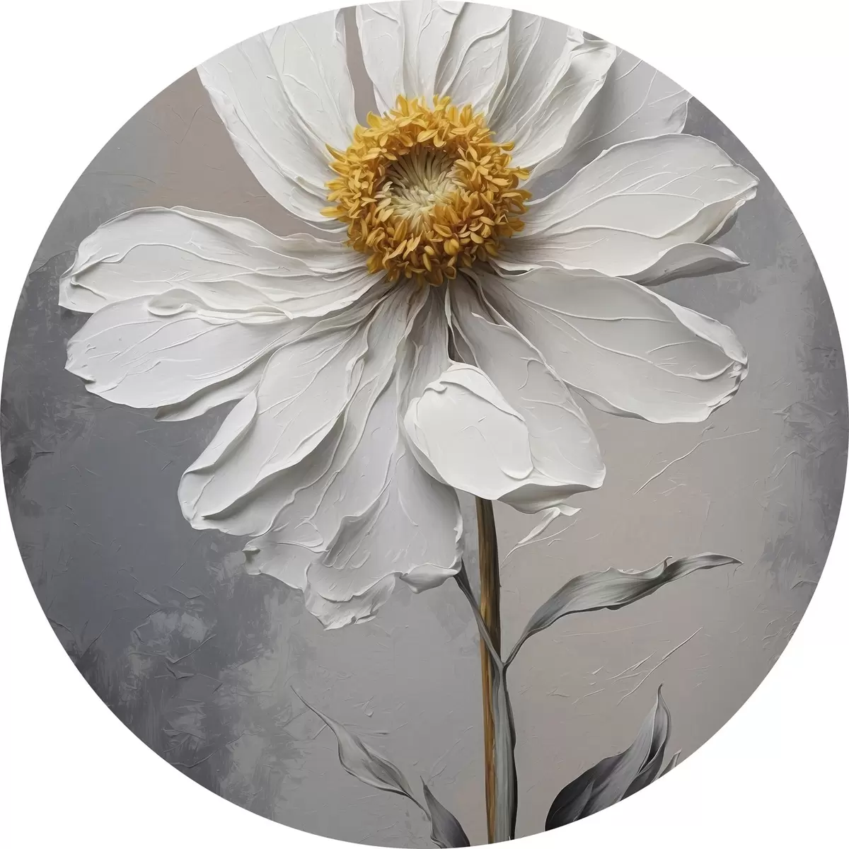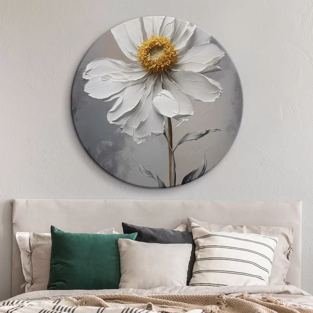 Quadri rotondi Camomilla su sfondo bianco in pittura ad olio r42758