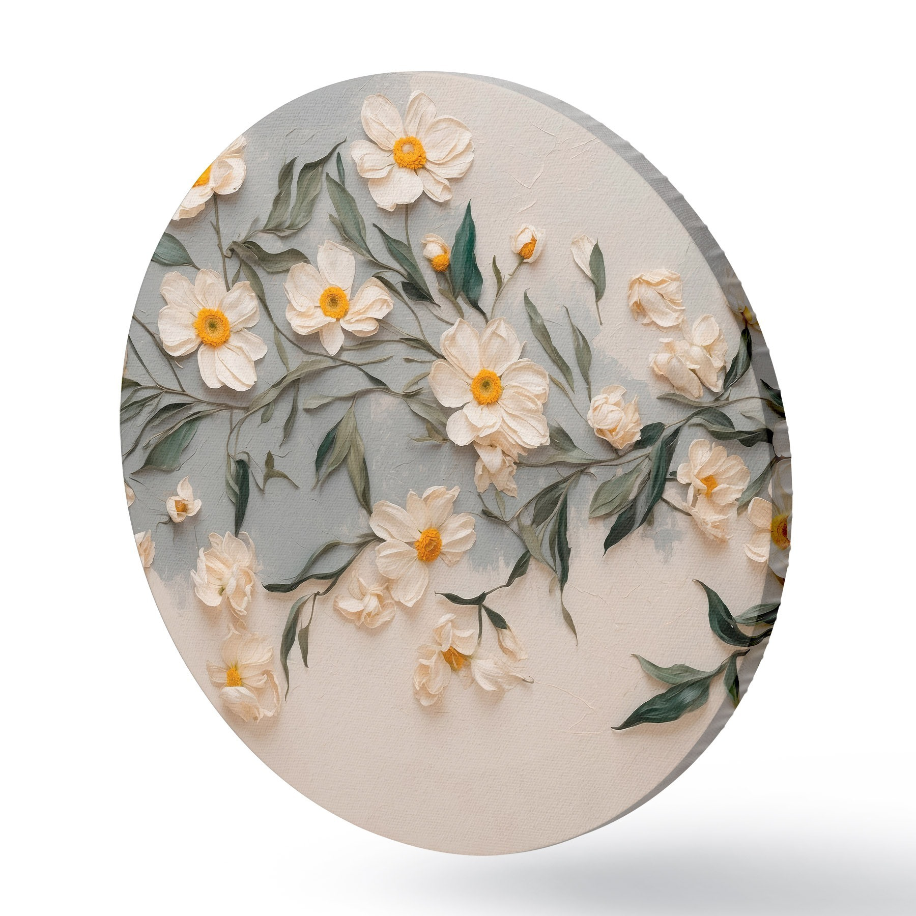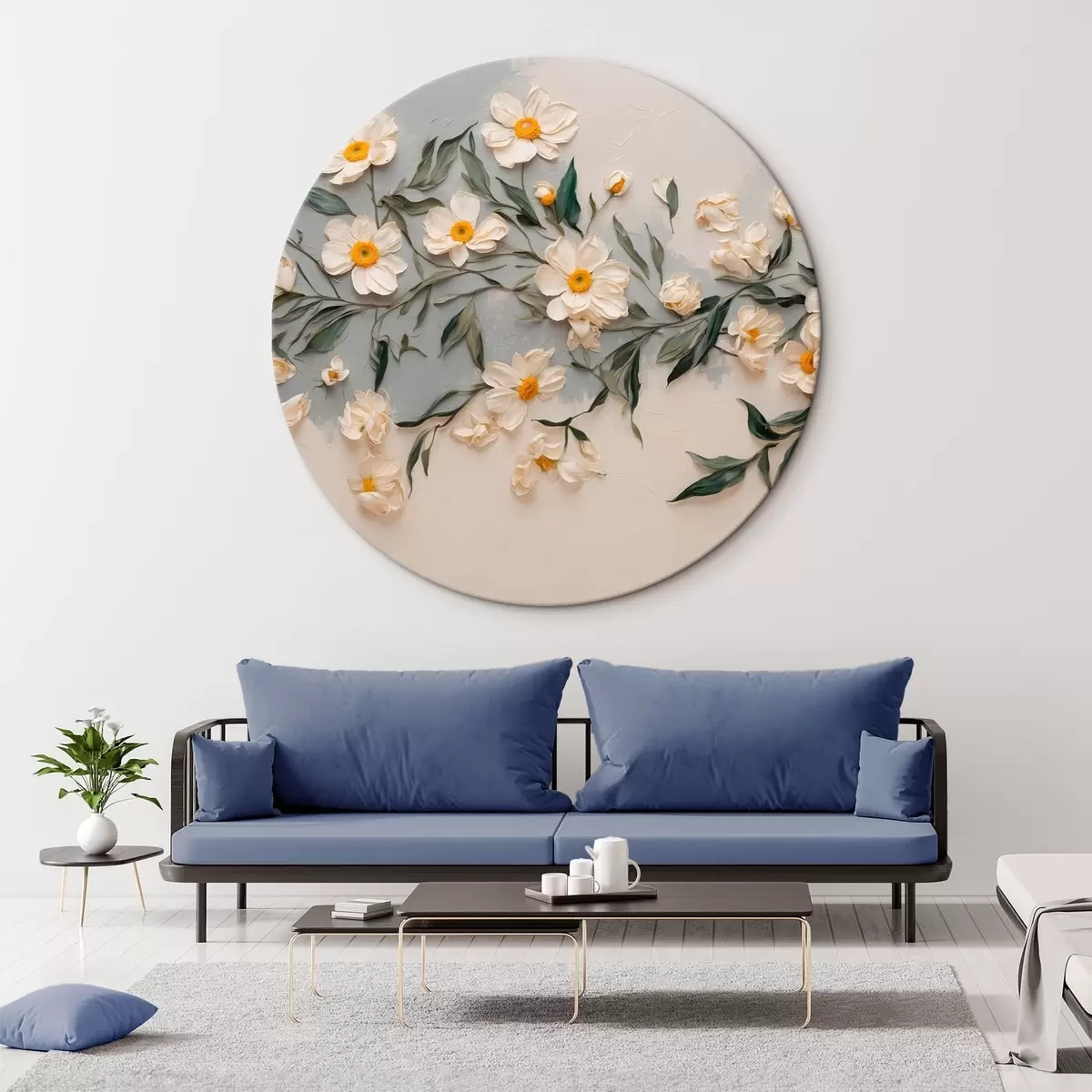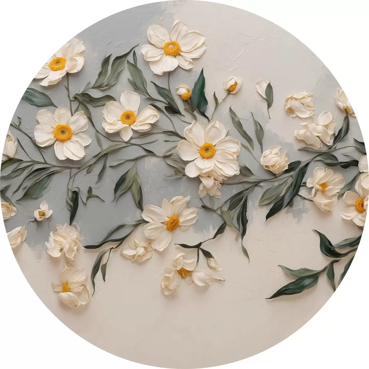 Quadri rotondi Fiore bianco e leaver su sfondo bianco e grigio r42764