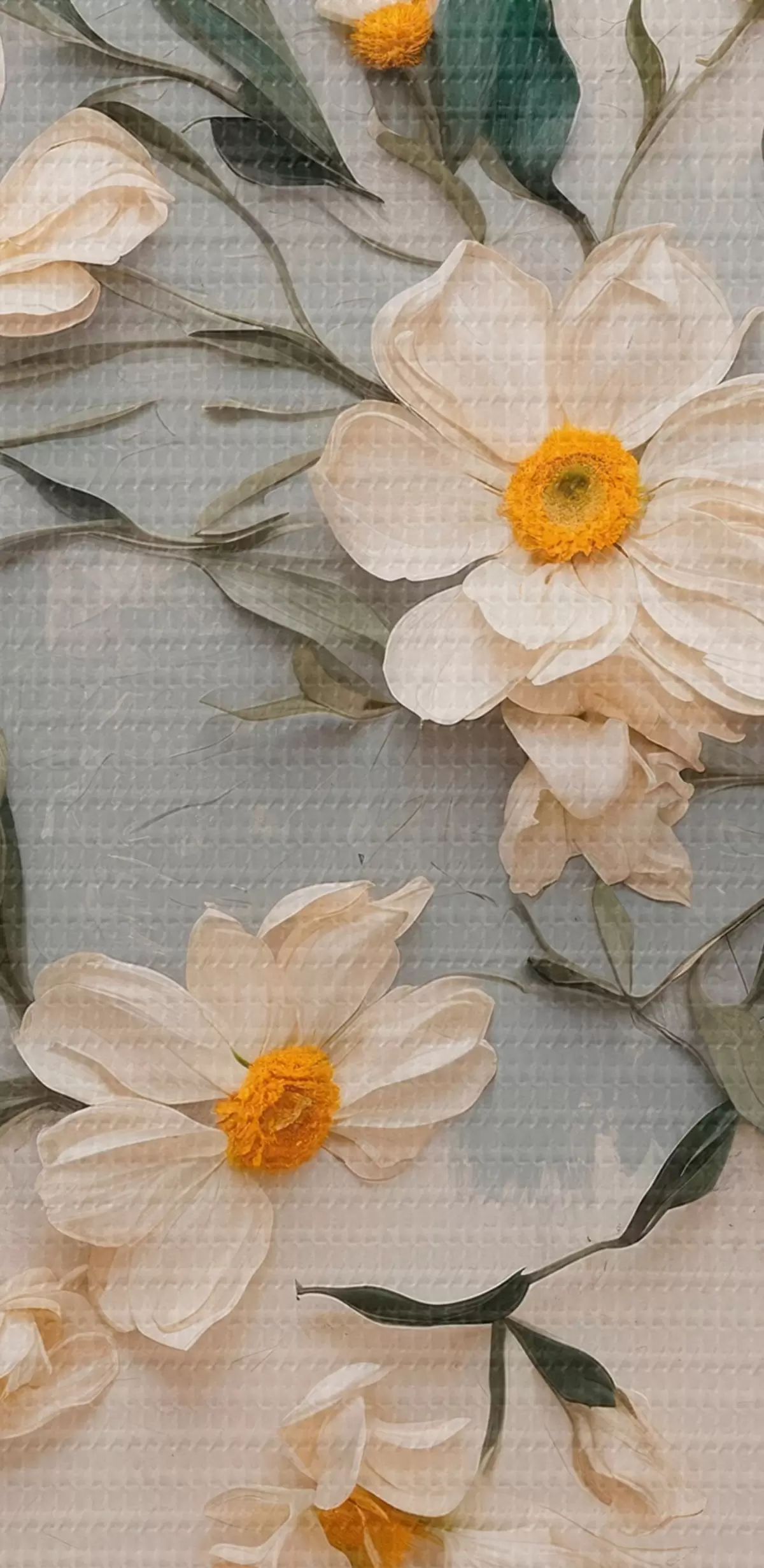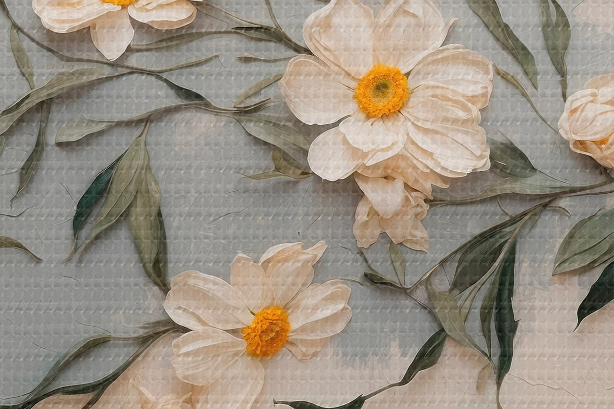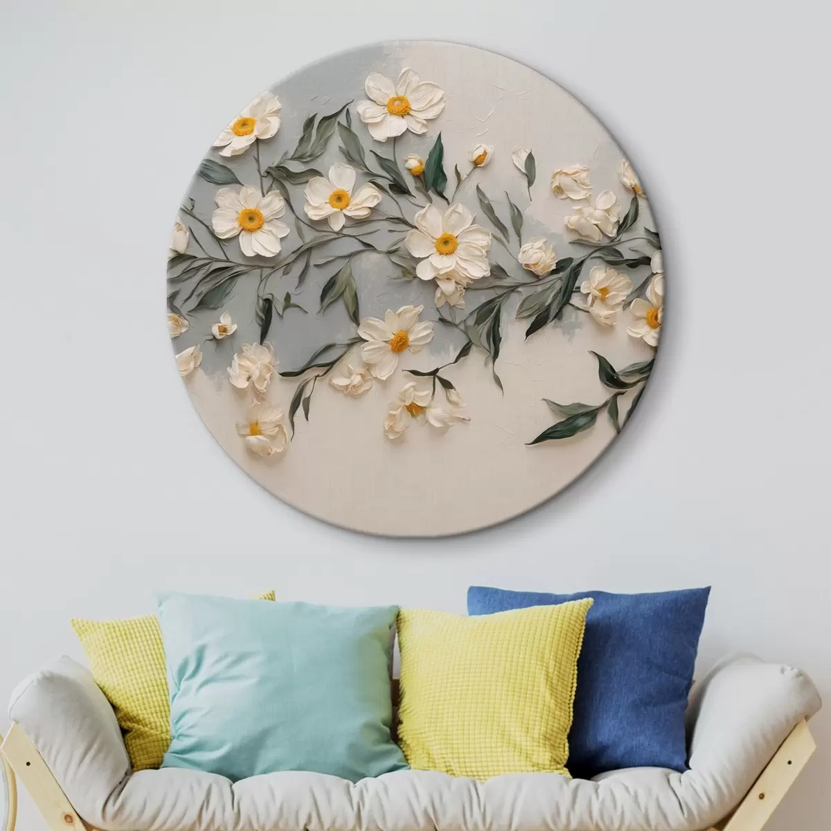 Quadri rotondi Fiore bianco e leaver su sfondo bianco e grigio r42764