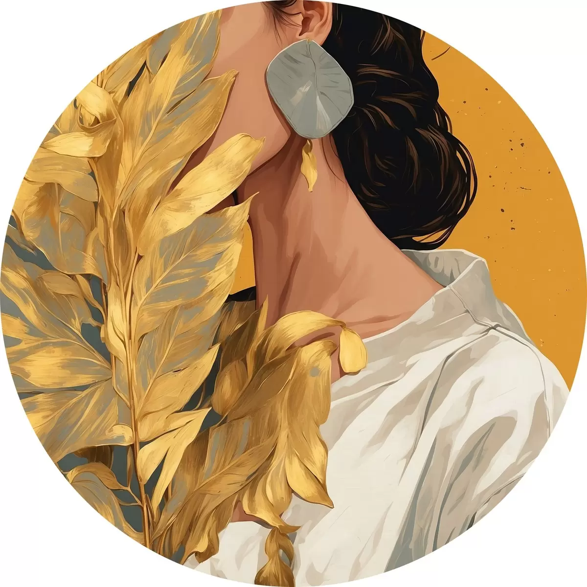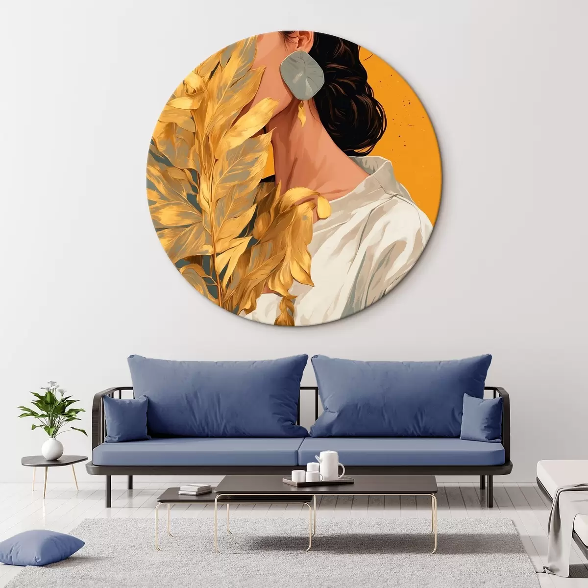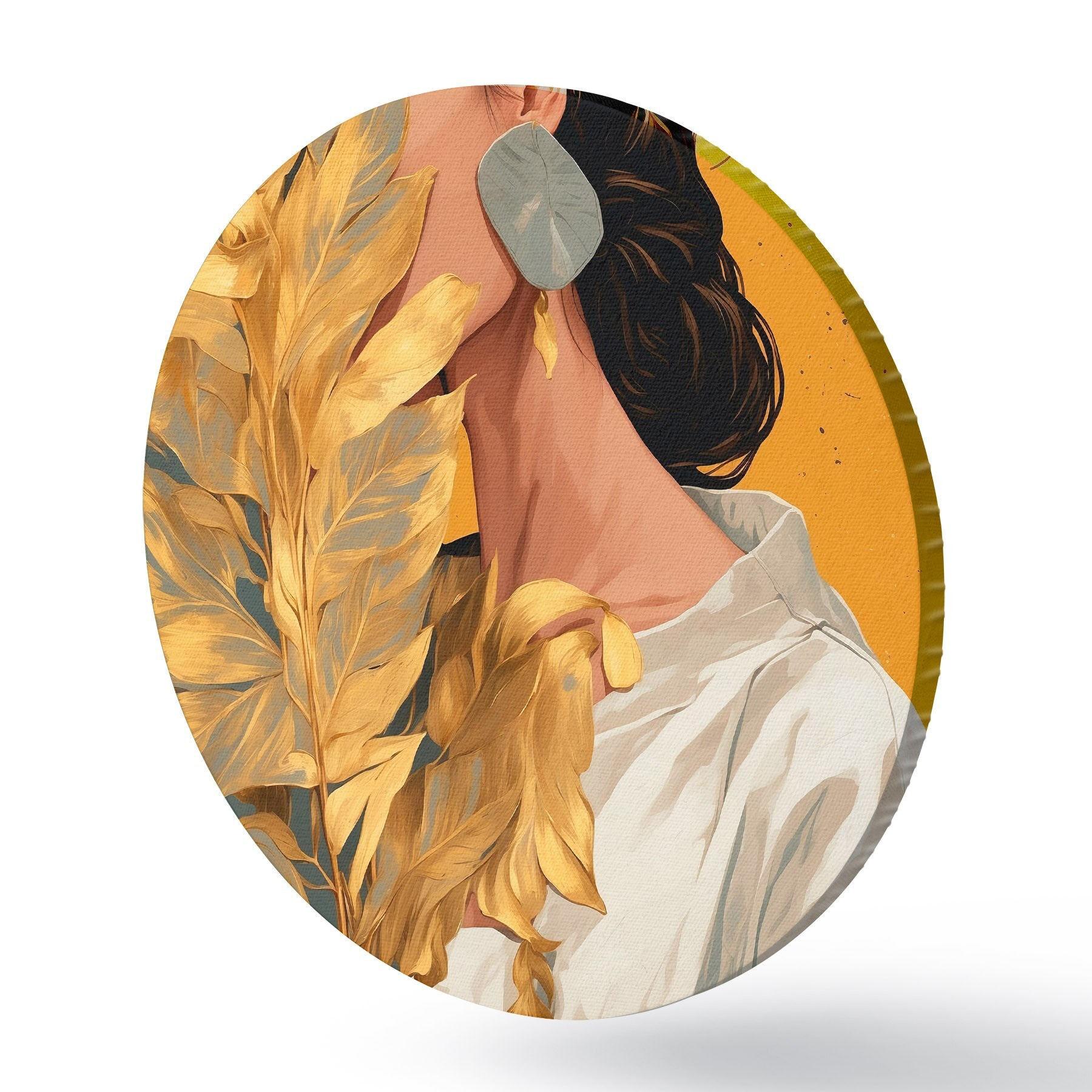 Quadri rotondi Ragazza con foglia tropicale r42765