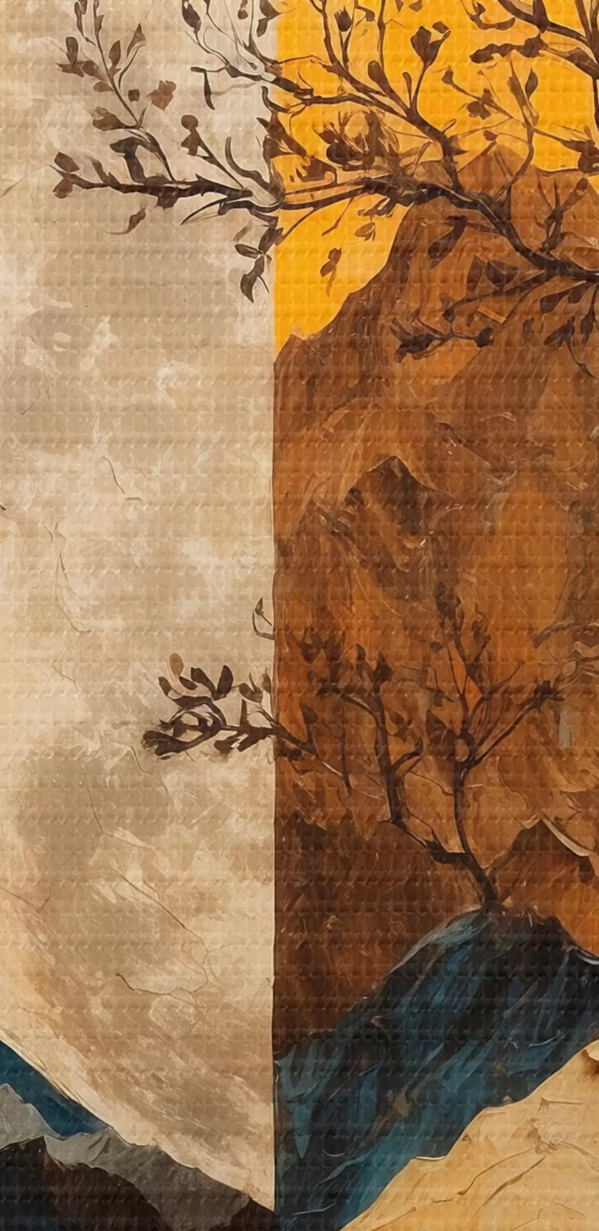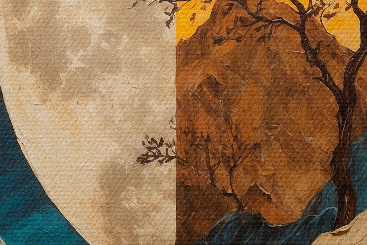Immagine Montagna multicolore su sfondo lunare in pittura acrilica stile Nr r42770