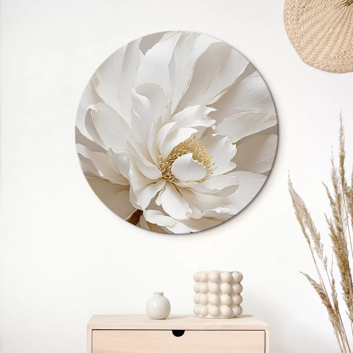 Quadri rotondi Fiore bianco su sfondo beige r42778