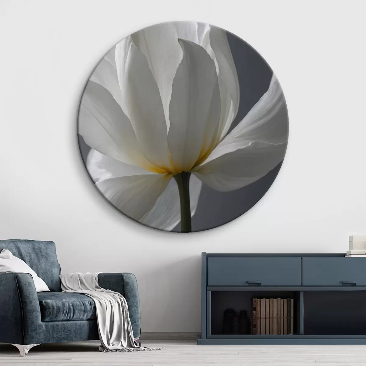 Quadri rotondi Fiore bianco su sfondo grigio r42779