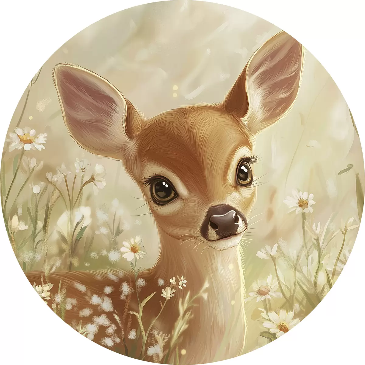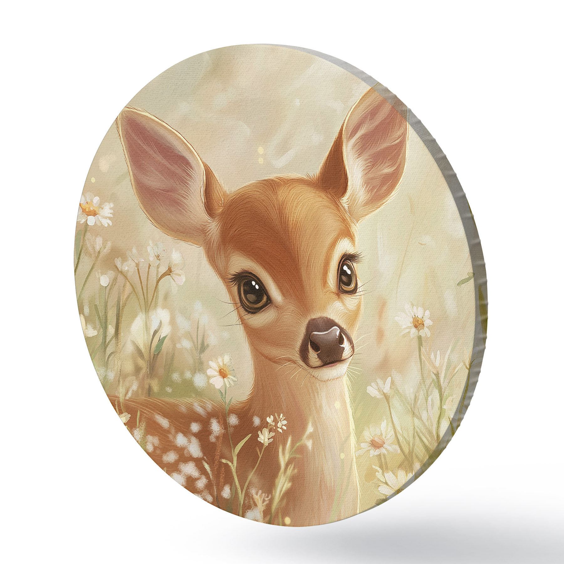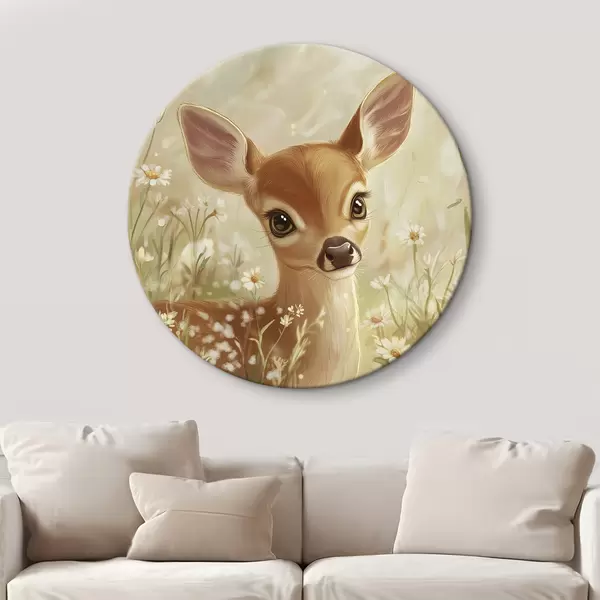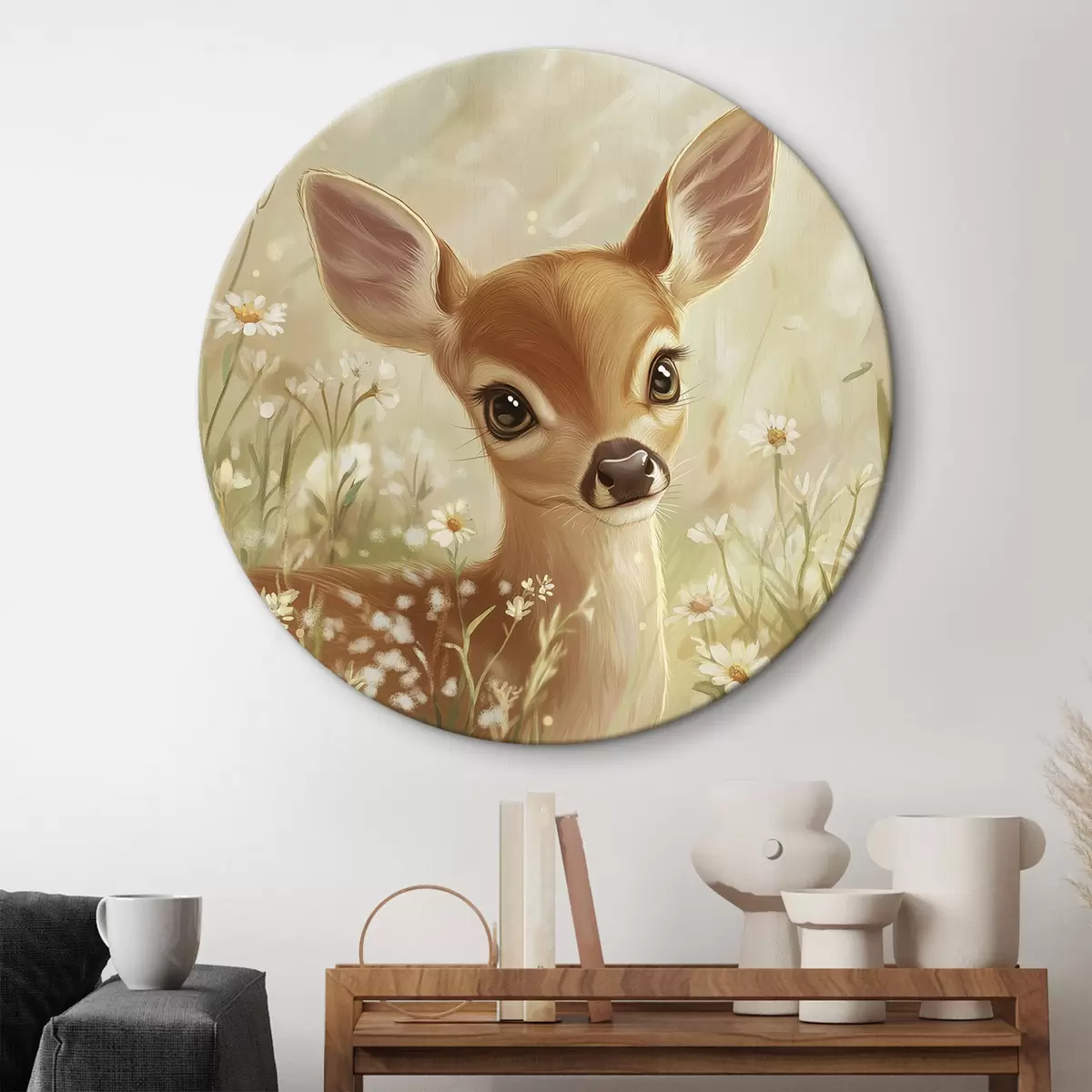 Quadri rotondi Carino il cervo nel prato con fiori di margherita, disegno a olio r42780