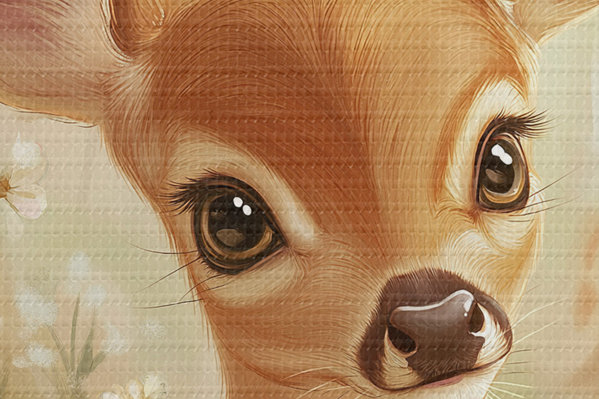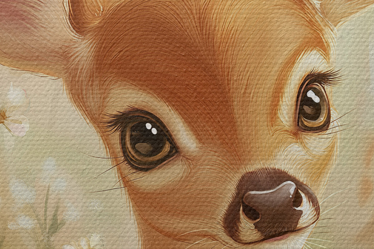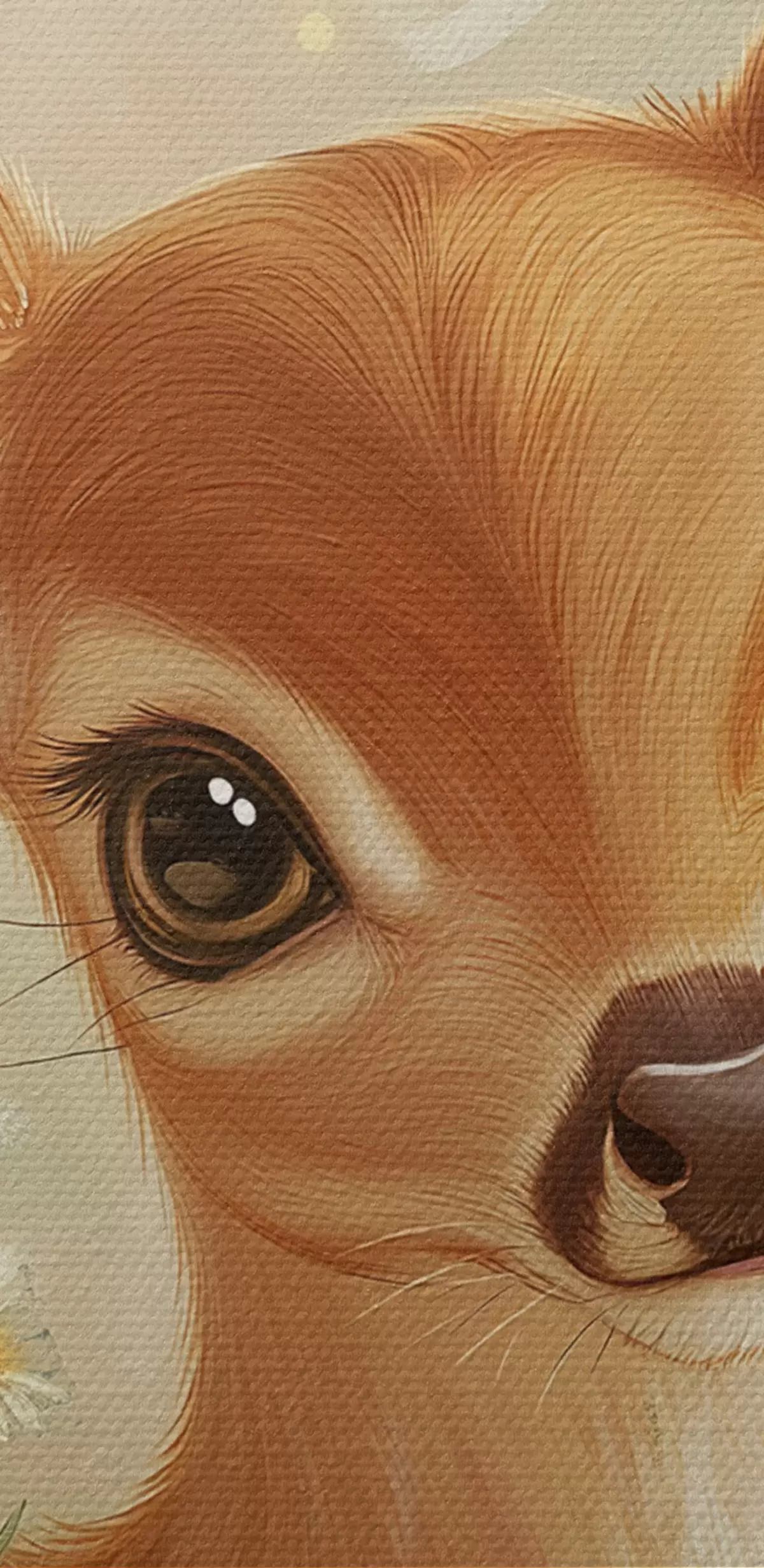 Immagine Carino il cervo nel prato con fiori di margherita, disegno a olio Nr r42780