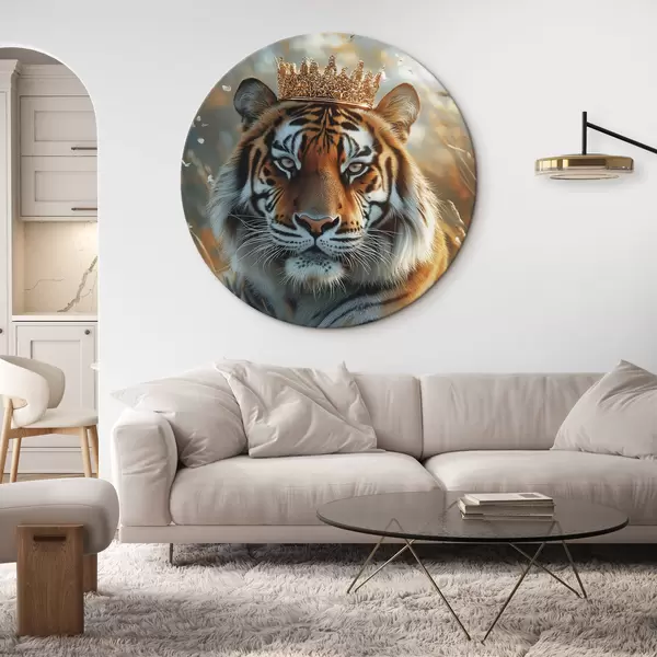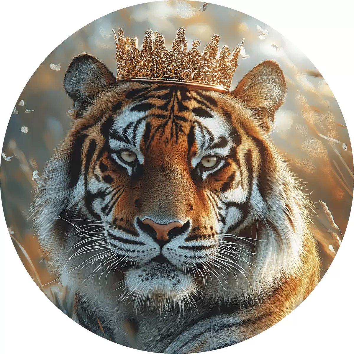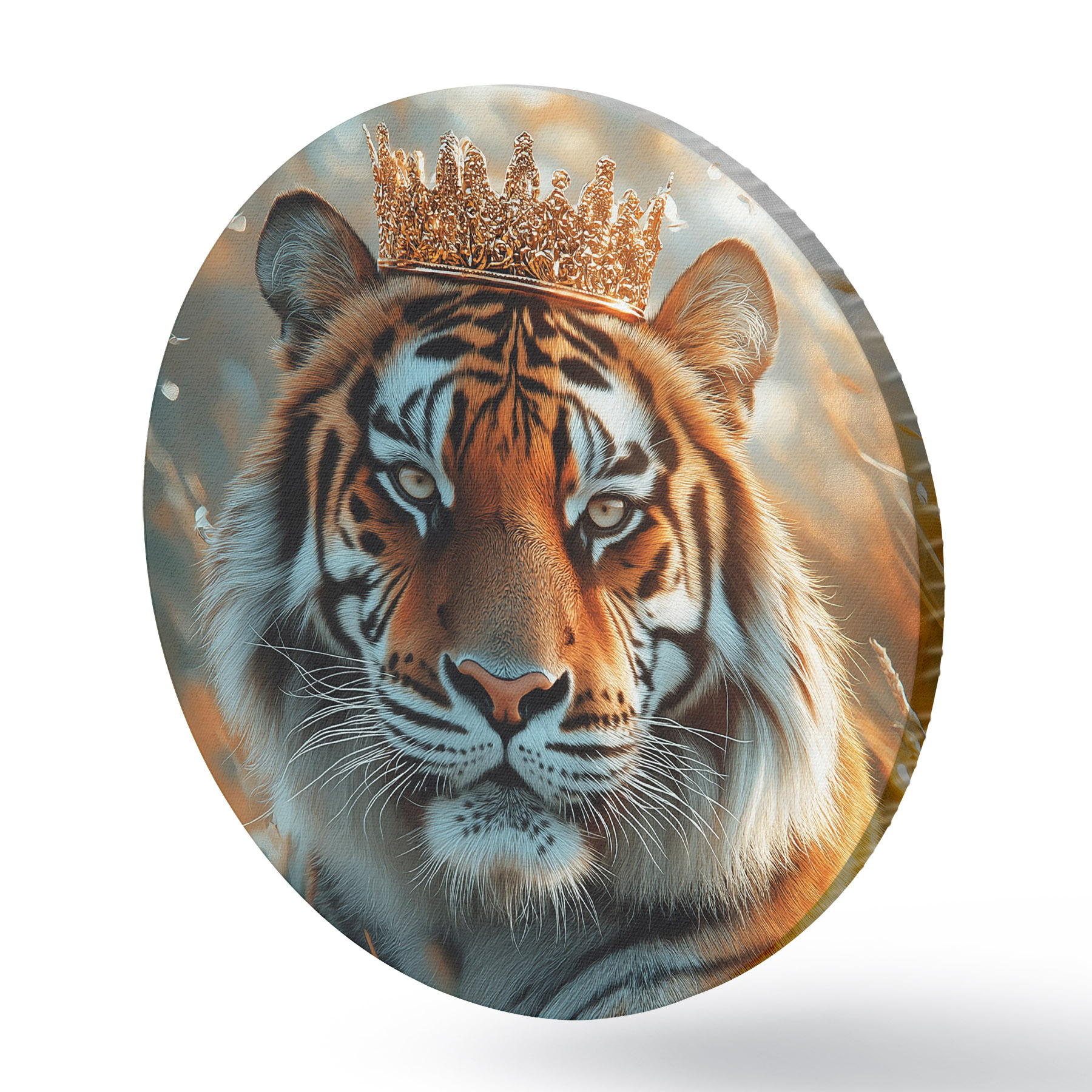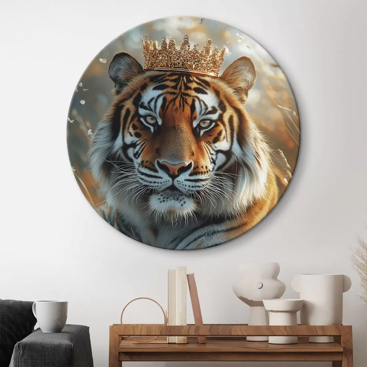 Quadri rotondi Bellissimo tigre con corona, prato estivo, realismo r42786
